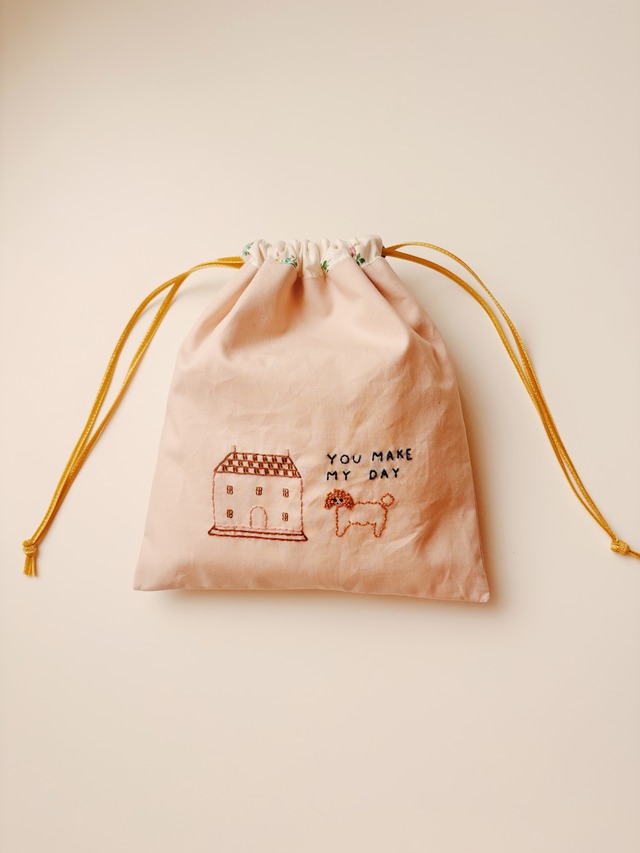 いくつあっても嬉しい、小さな手刺繍のポーチを作りました。 口の部分は切替えで、リバティープリントの生地を使用しています。 4種類、それぞれ私の好きな英語のフレーズを刺繍しています。 YOU MAKE MY DAYというのは、ずっと前にイギリスで聞いた好きなフレーズ。 あなたのおかげでいい日になったよ、みたいな意味です。 もこもこのプードルは、フレンチノットステッチのつぶつぶで表現しました。 生地はちょっとくすんだピンクで、使うほどに味が出そうです。 素材 表 コットン100% 裏 コットン100% サイズ 縦約18cm x 横約17cm リボン 約28cm 注•刺繍の作品は全てアトリエにて、作家の手によって作られています。ひとつひとつ刺繍が違い、一点ずつなので再入荷の予定はありません。お気に入りを見つけていただけたら嬉しいです。 *画像1枚目の作品のみの販売となります。他の作品や小物は撮影用となりますので、ご注意ください。