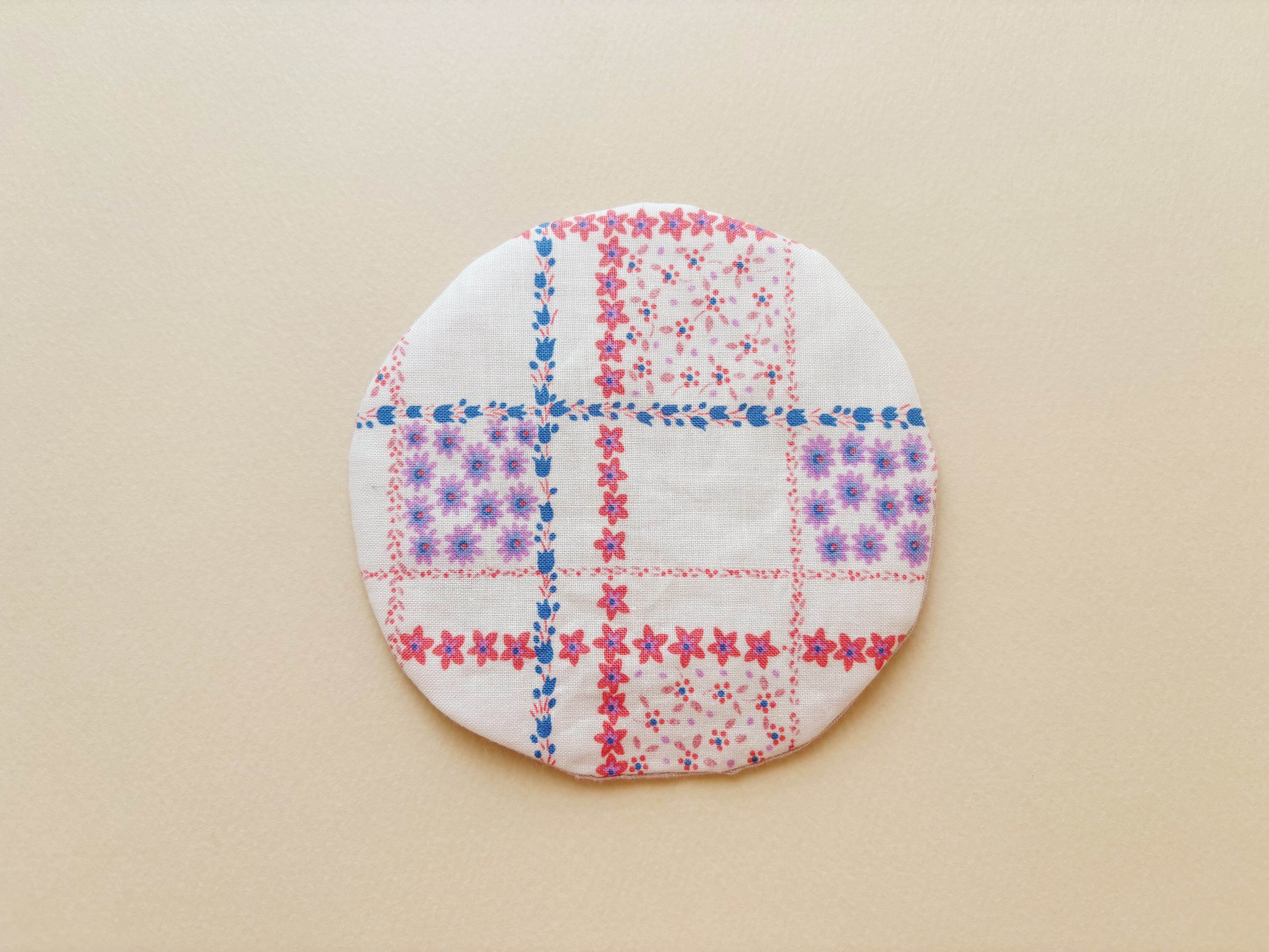 裏は、私が旅先などでコツコツ集めているビンテージの小花柄のファブリックを使用しています。