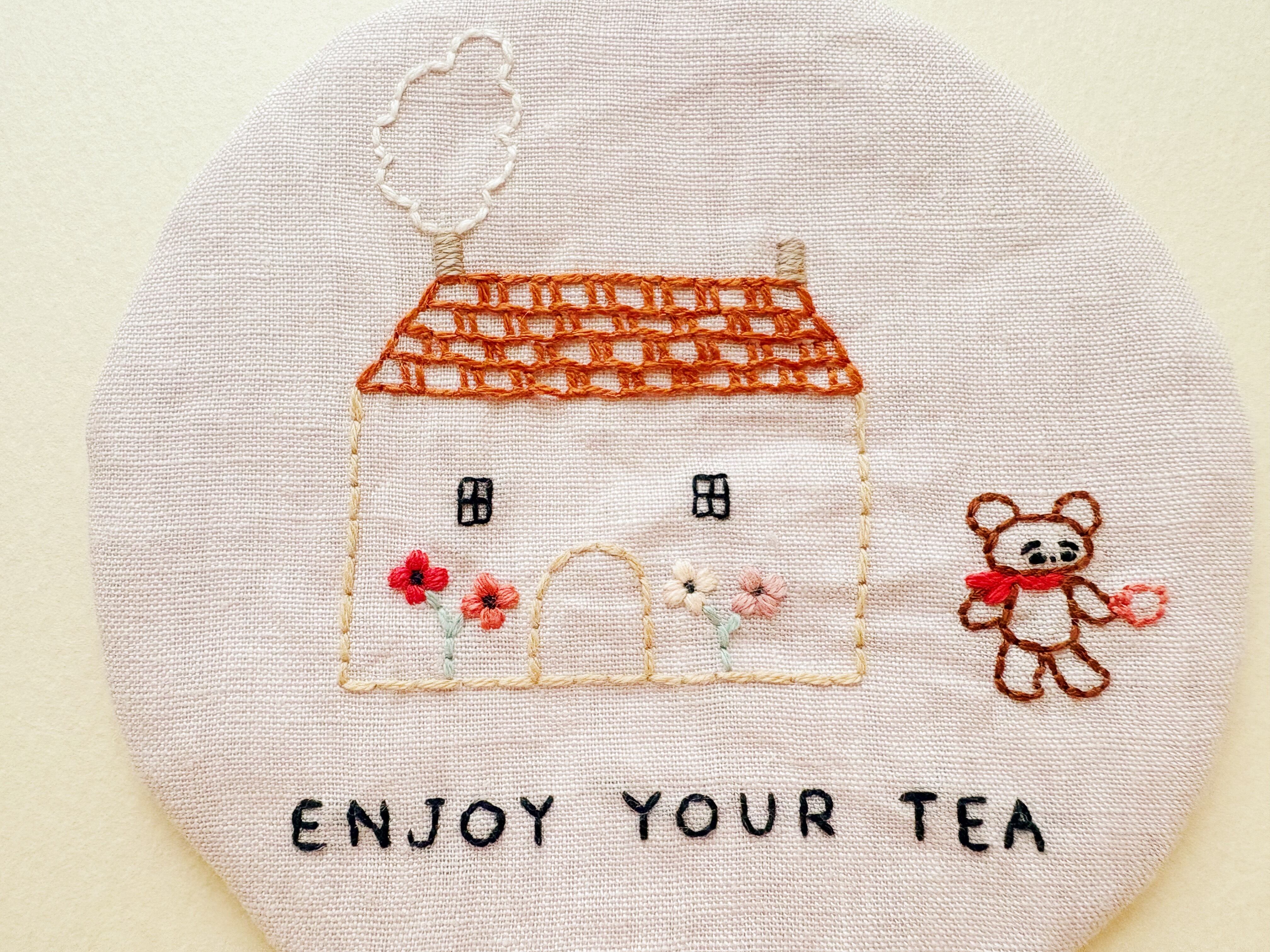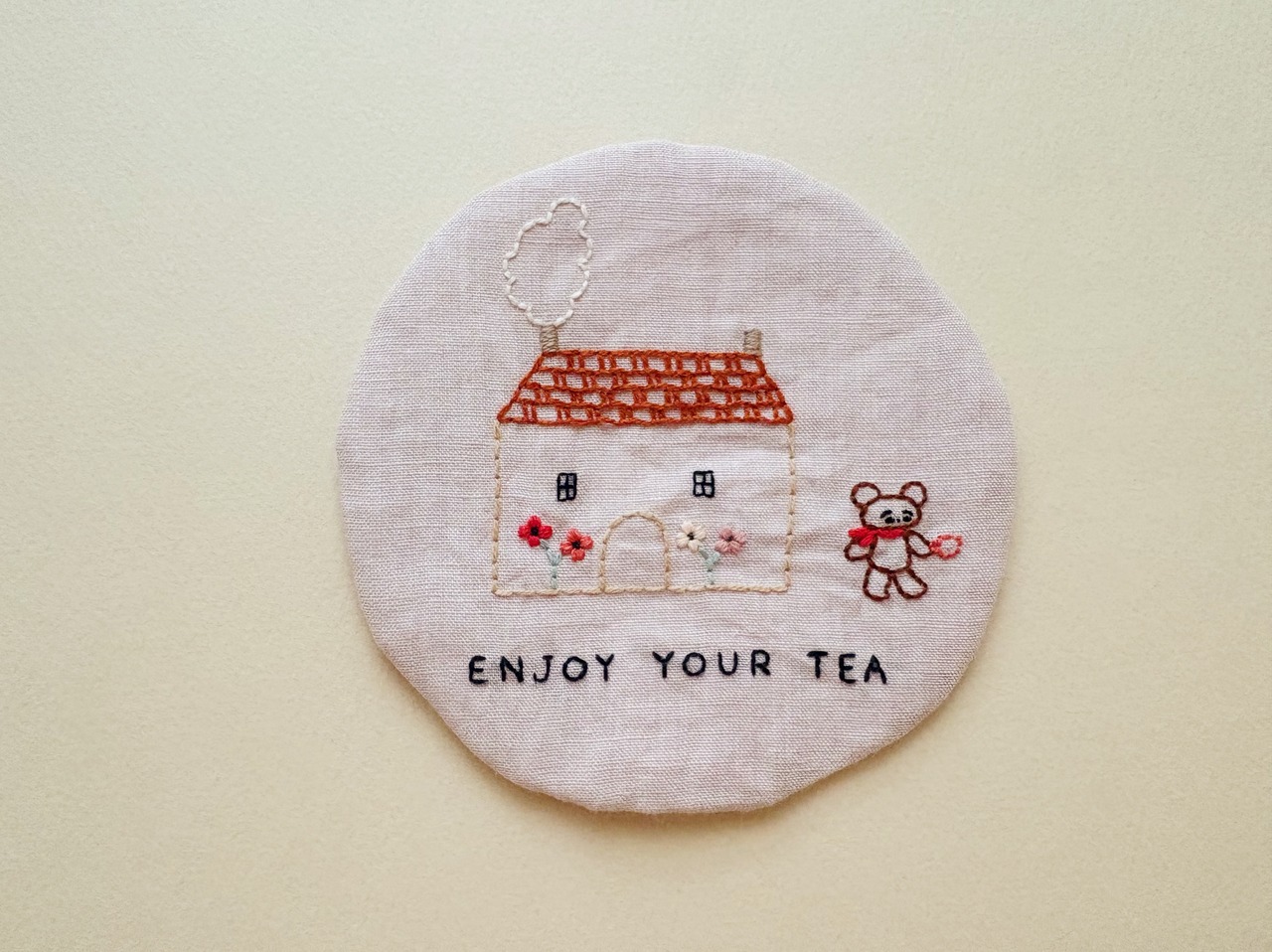 Linen coaster/ Enjoy Your Tea / pink lavender
