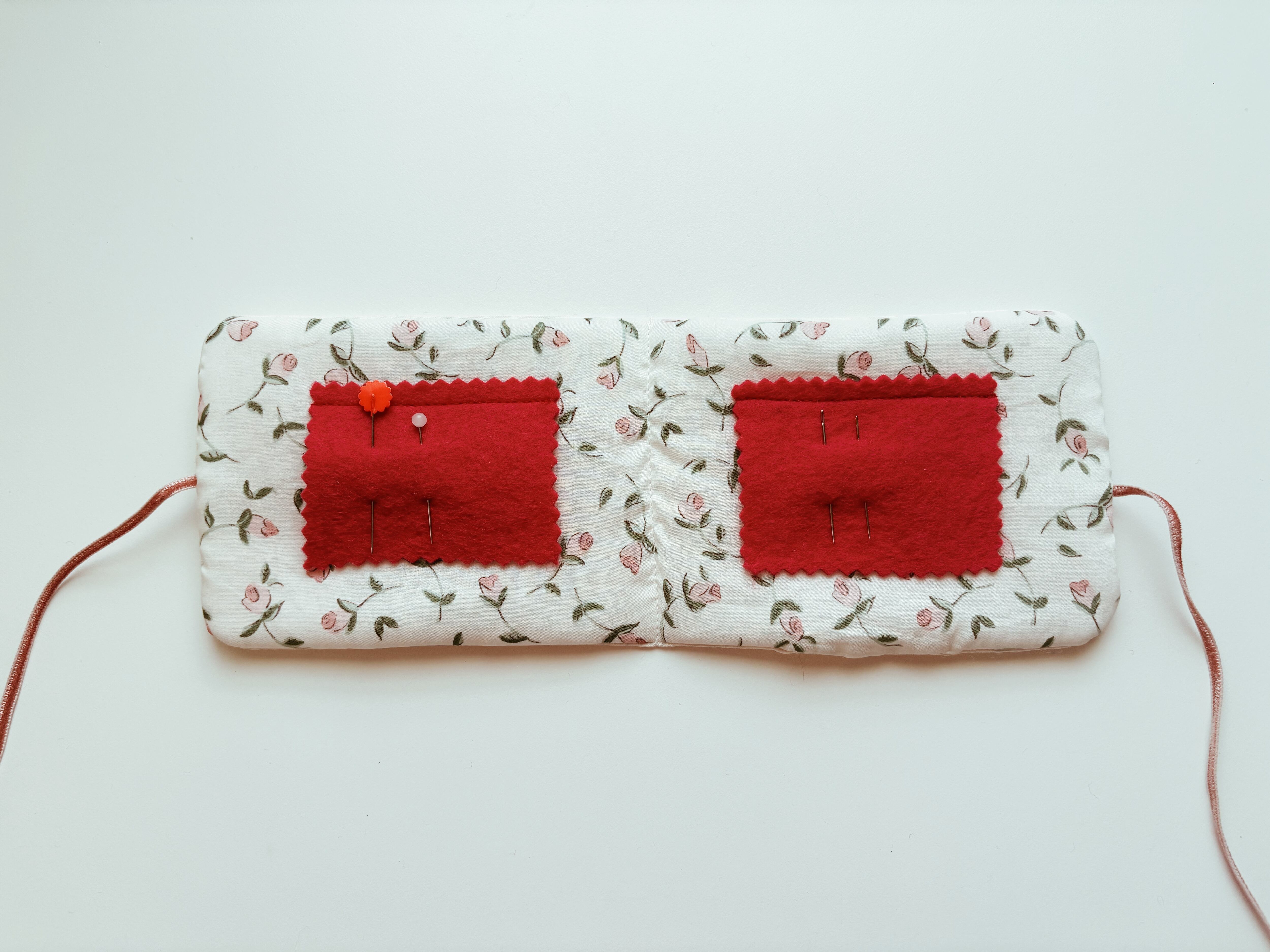 こちらはローズ柄のリバティープリントを裏地に使用しています。フェルト部分に針を刺してご利用ください。