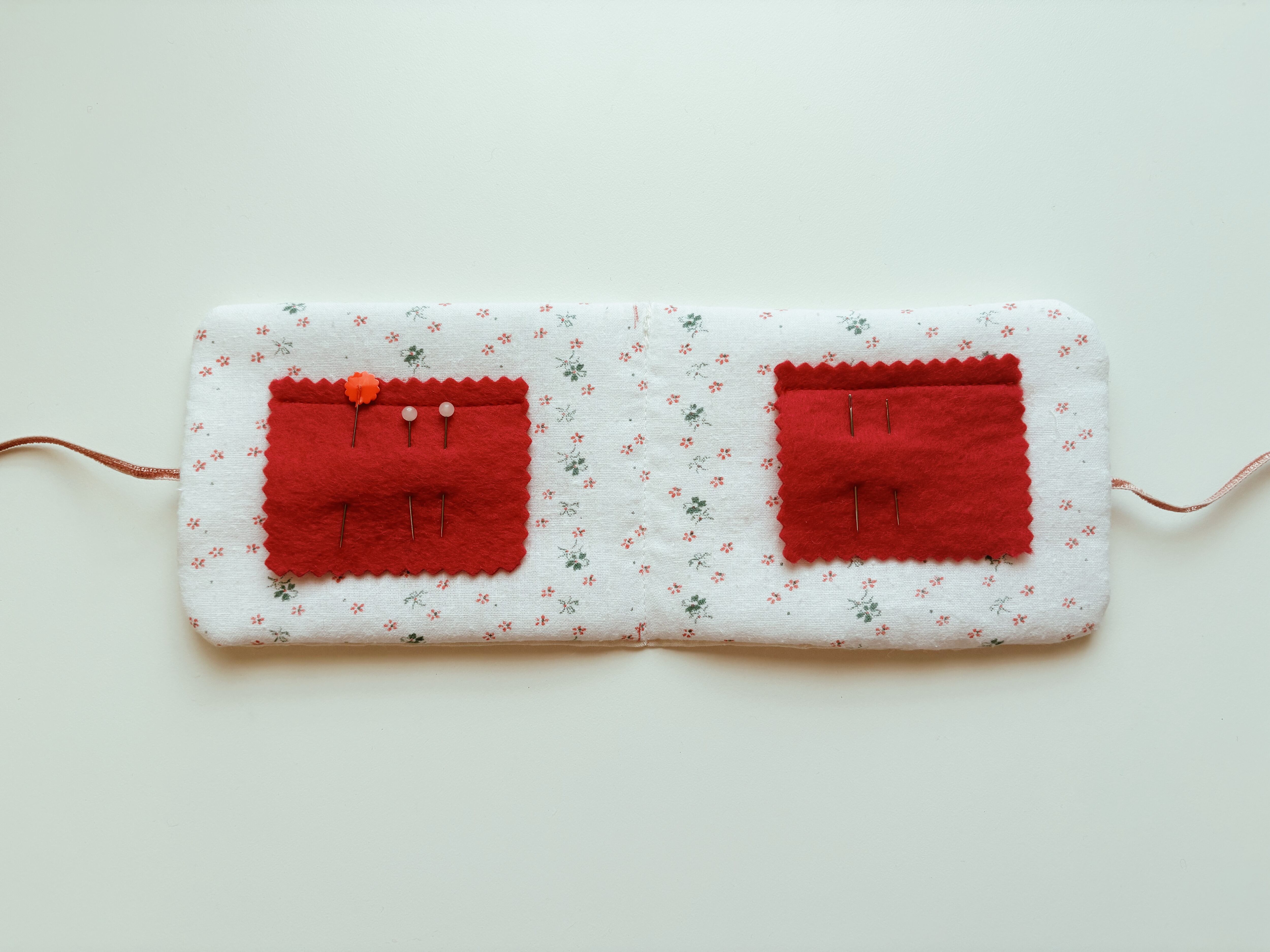 こちらはヴィンテージの花柄の生地を裏地に使用しています。フェルト部分に針を刺してご利用ください。
