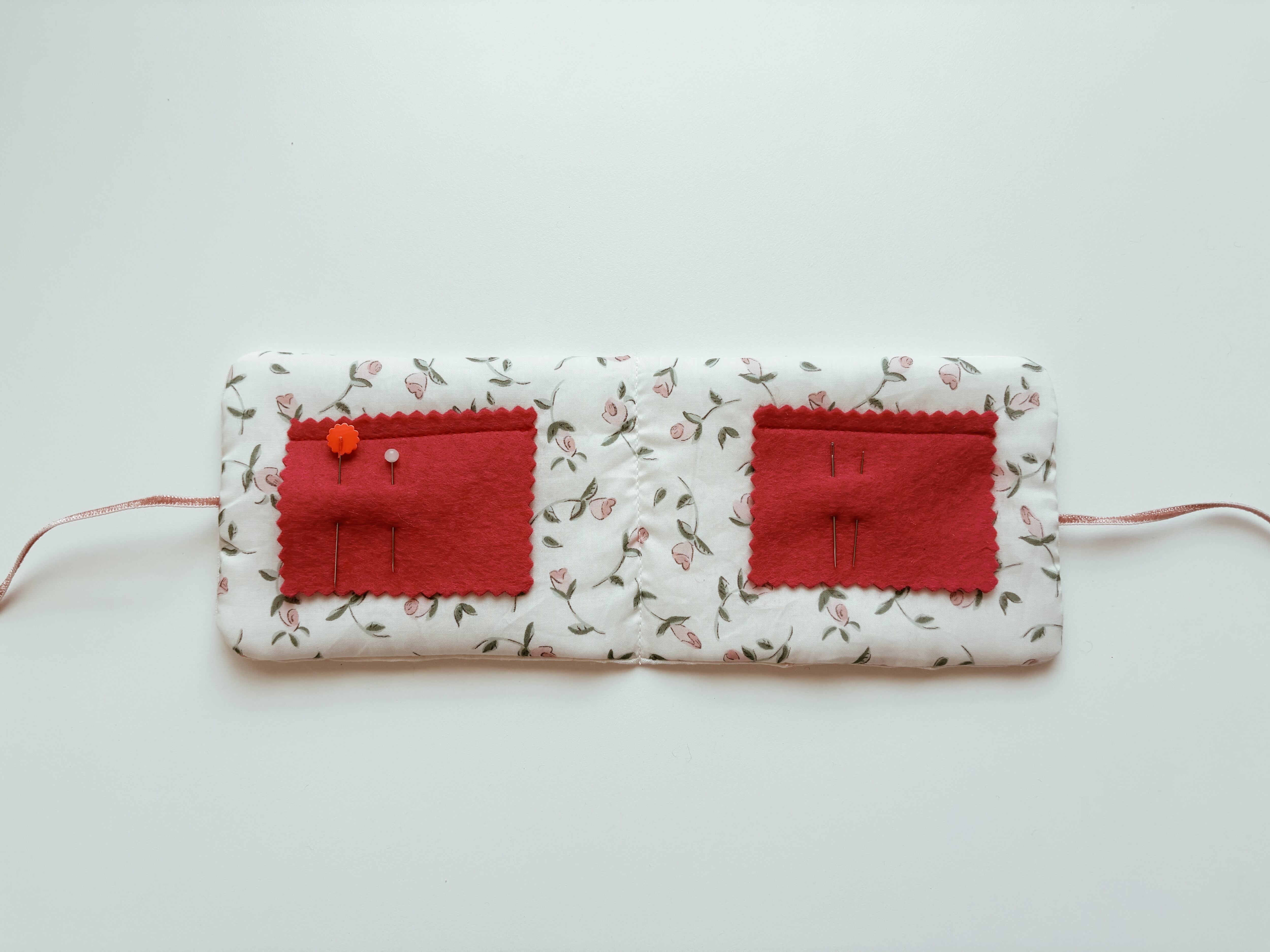 こちらはローズ柄のリバティープリントを裏地に使用しています。フェルト部分に針を刺してご利用ください。