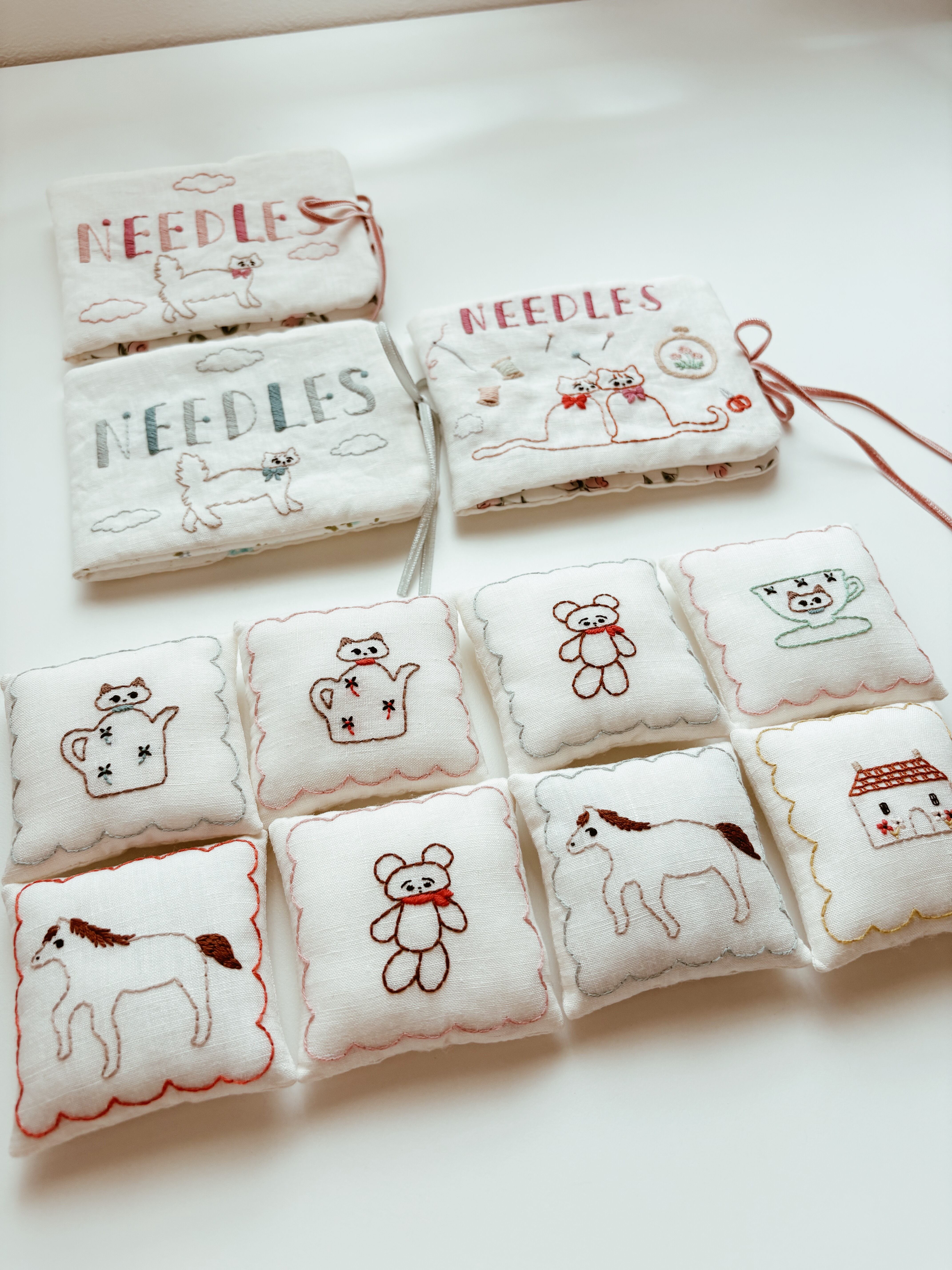注• ピンクッションは全てアトリエにて、作家の手によってつくられています。同じ柄でも、ひとつひとつの表情が少しずつ違いますが、ご理解いただけますようお願いいたします。