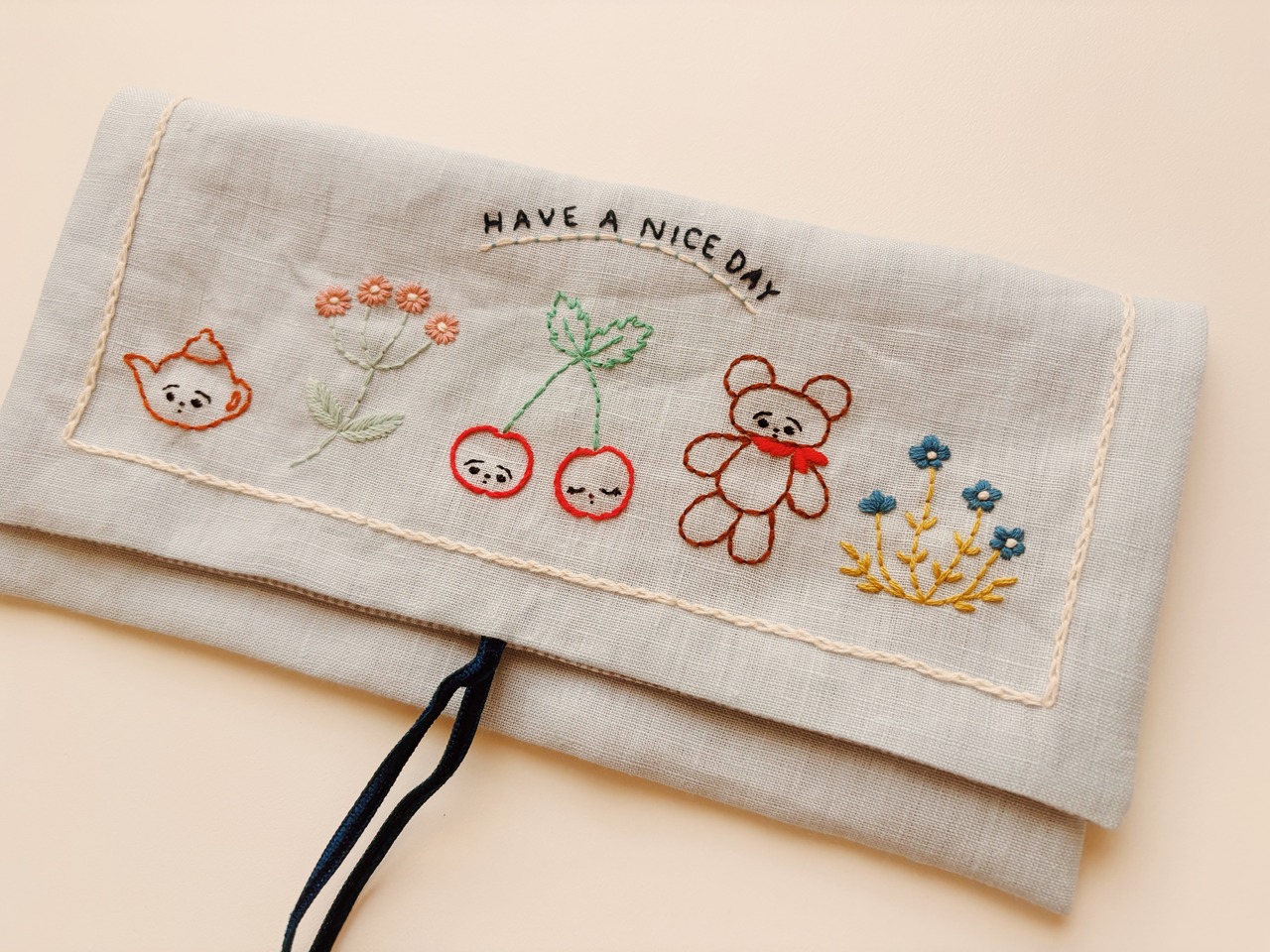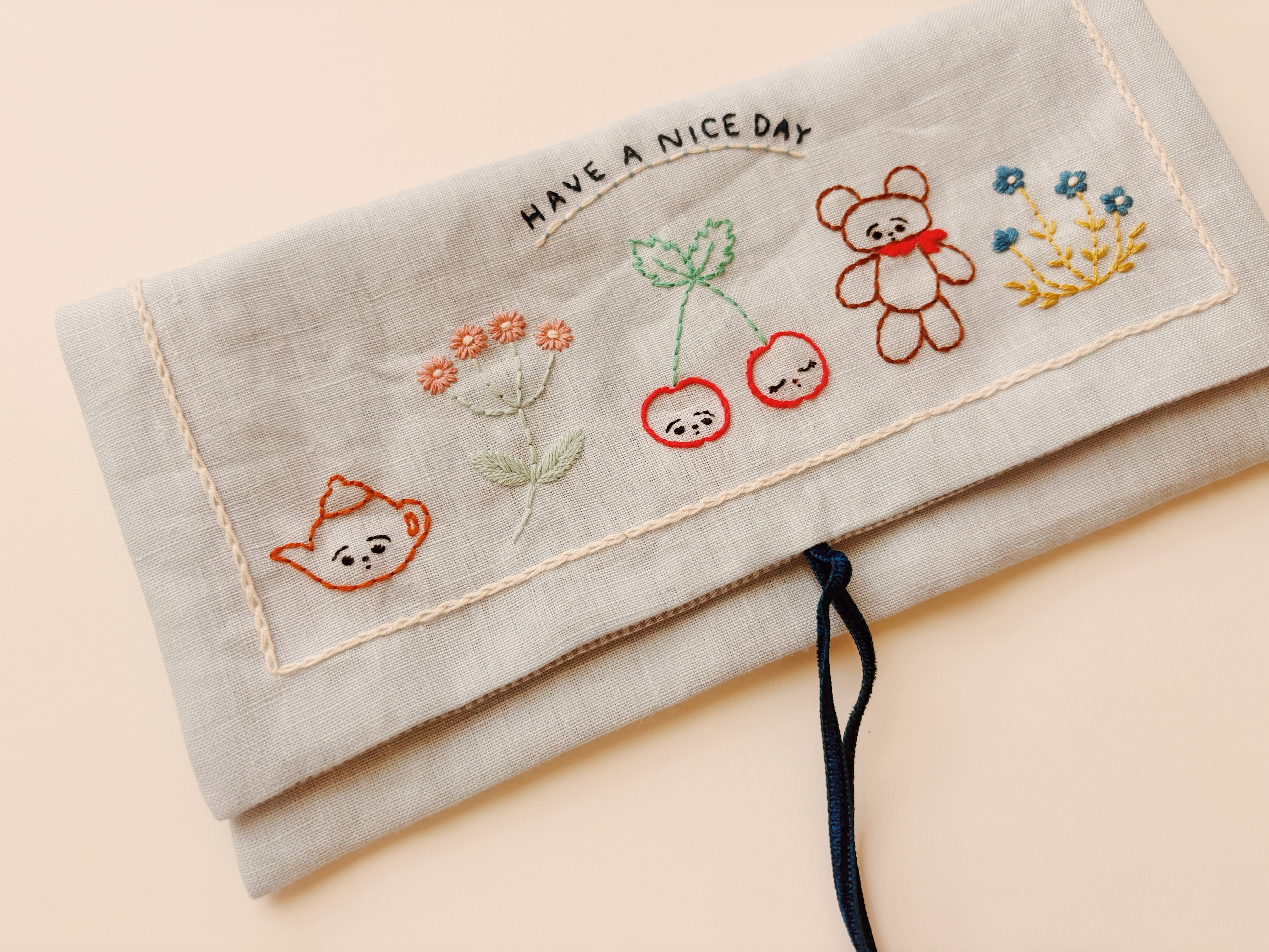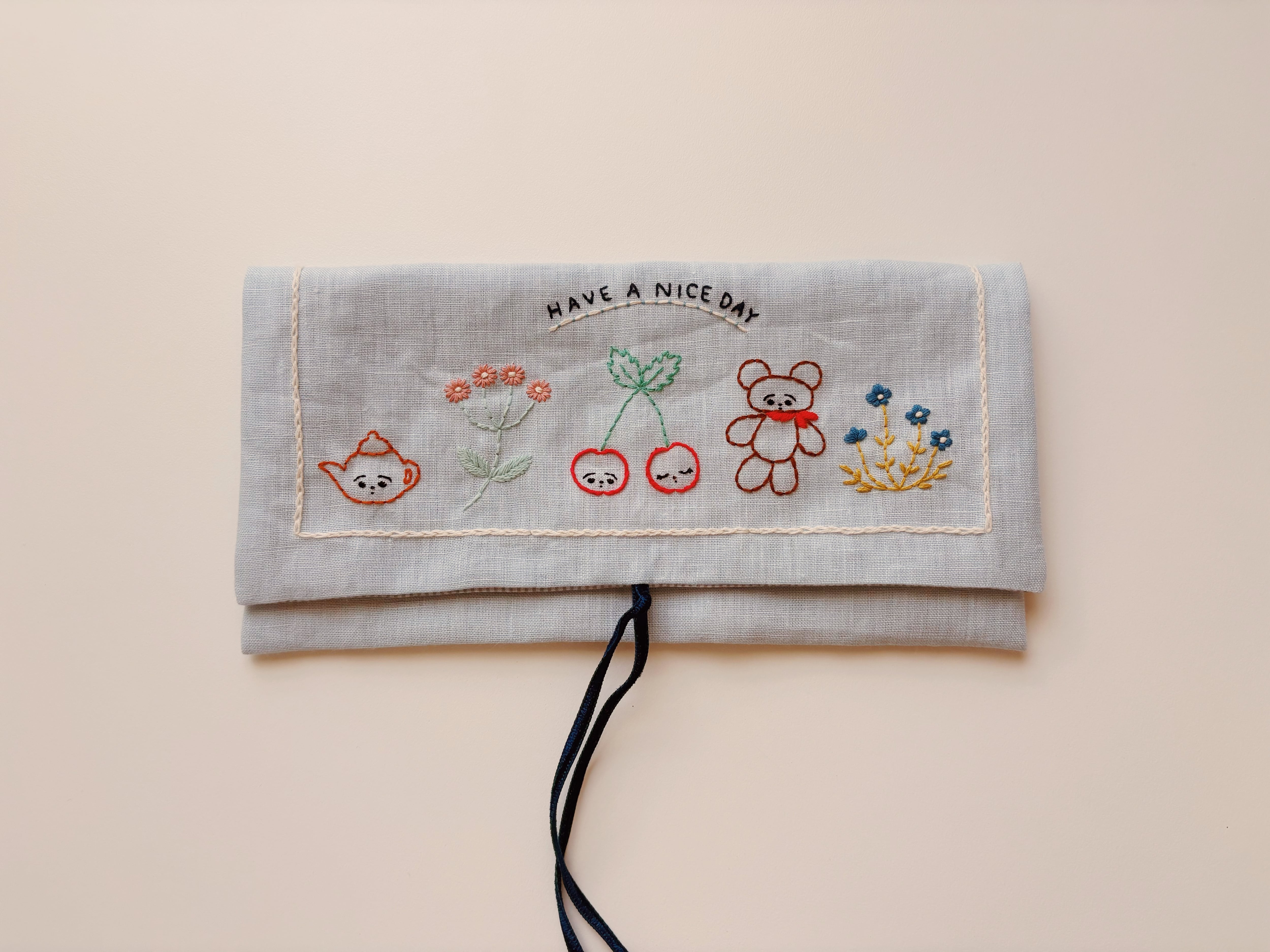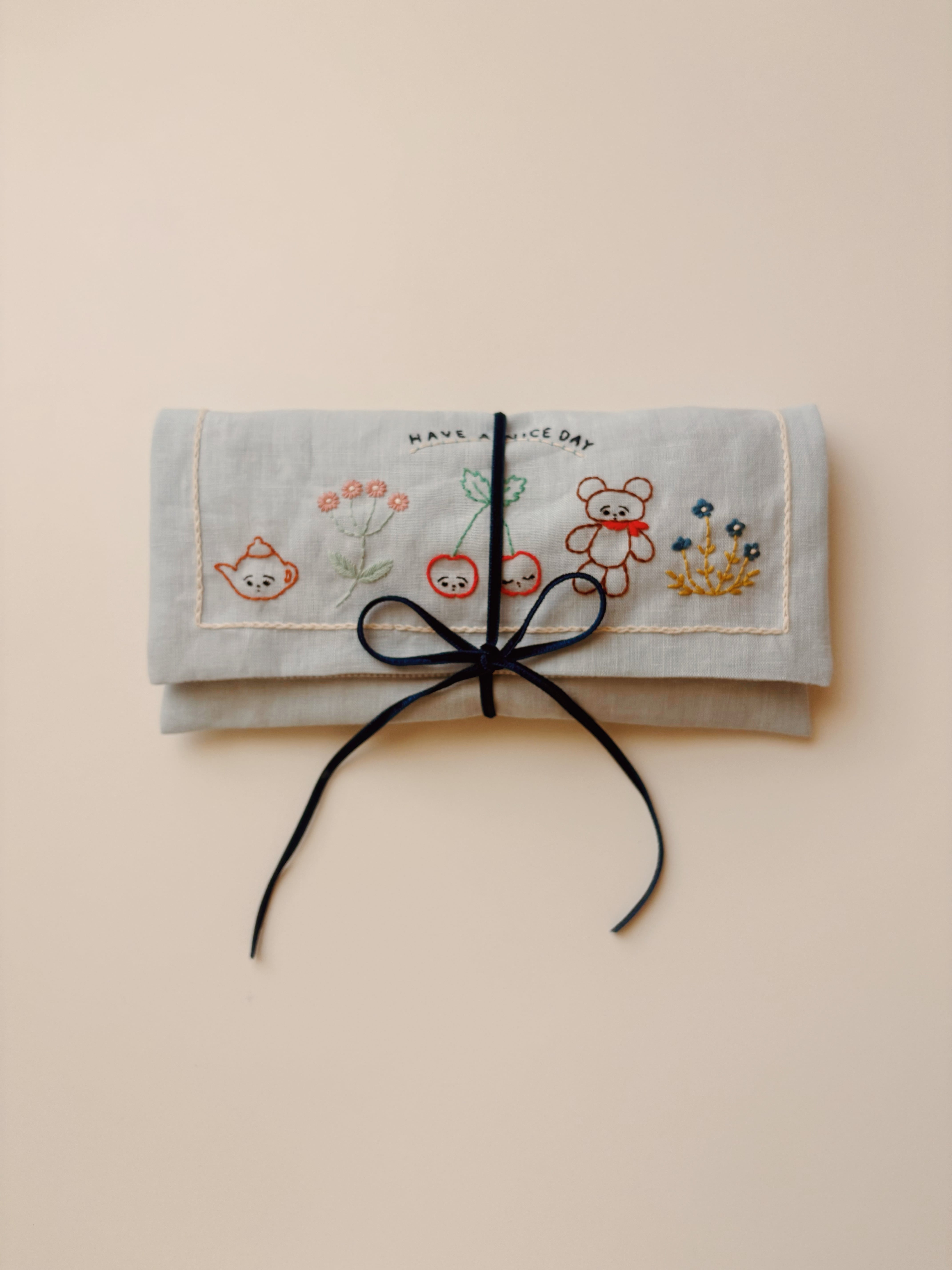 Linen Flap Pouch HAVE A NICE DAY