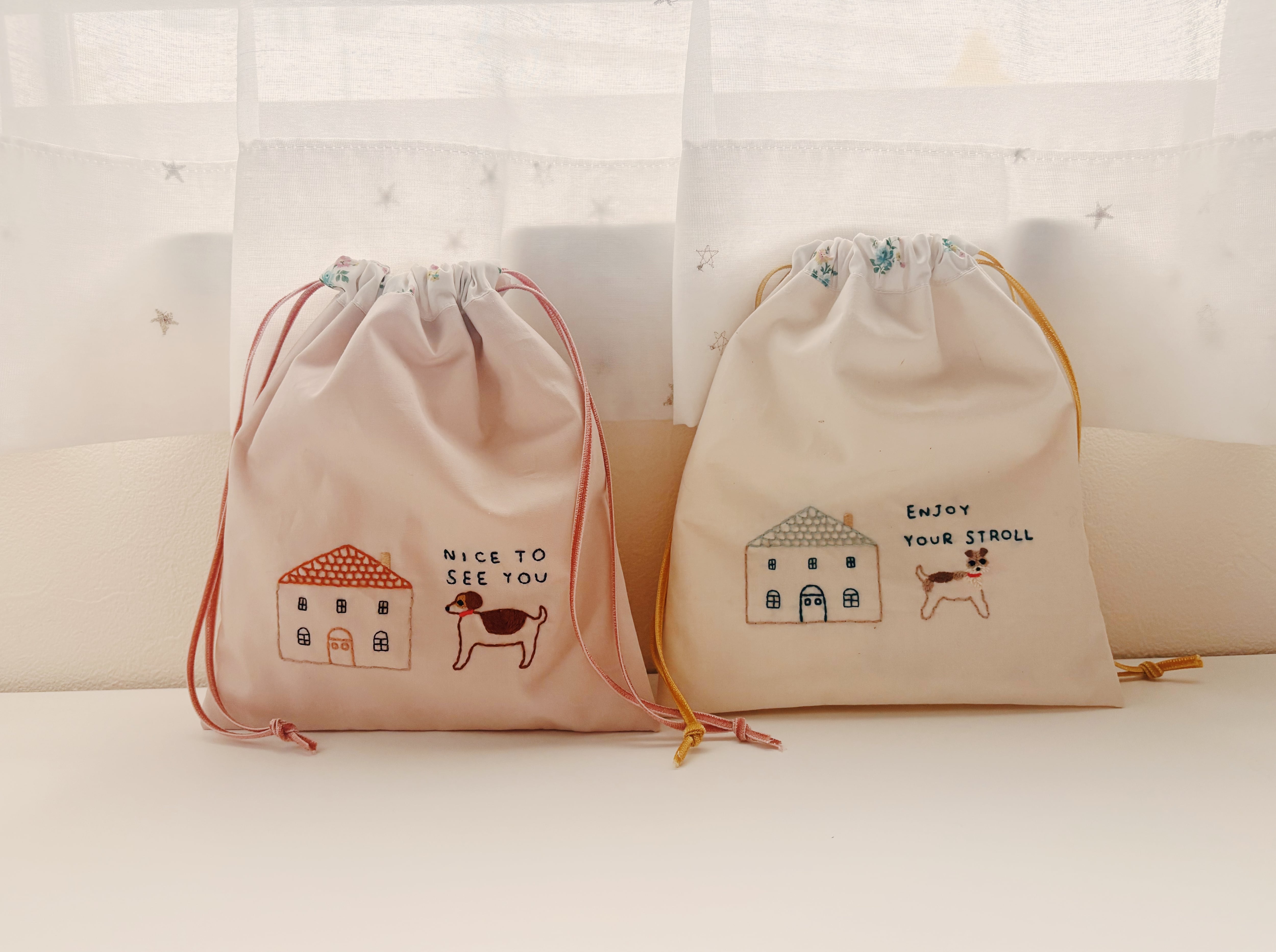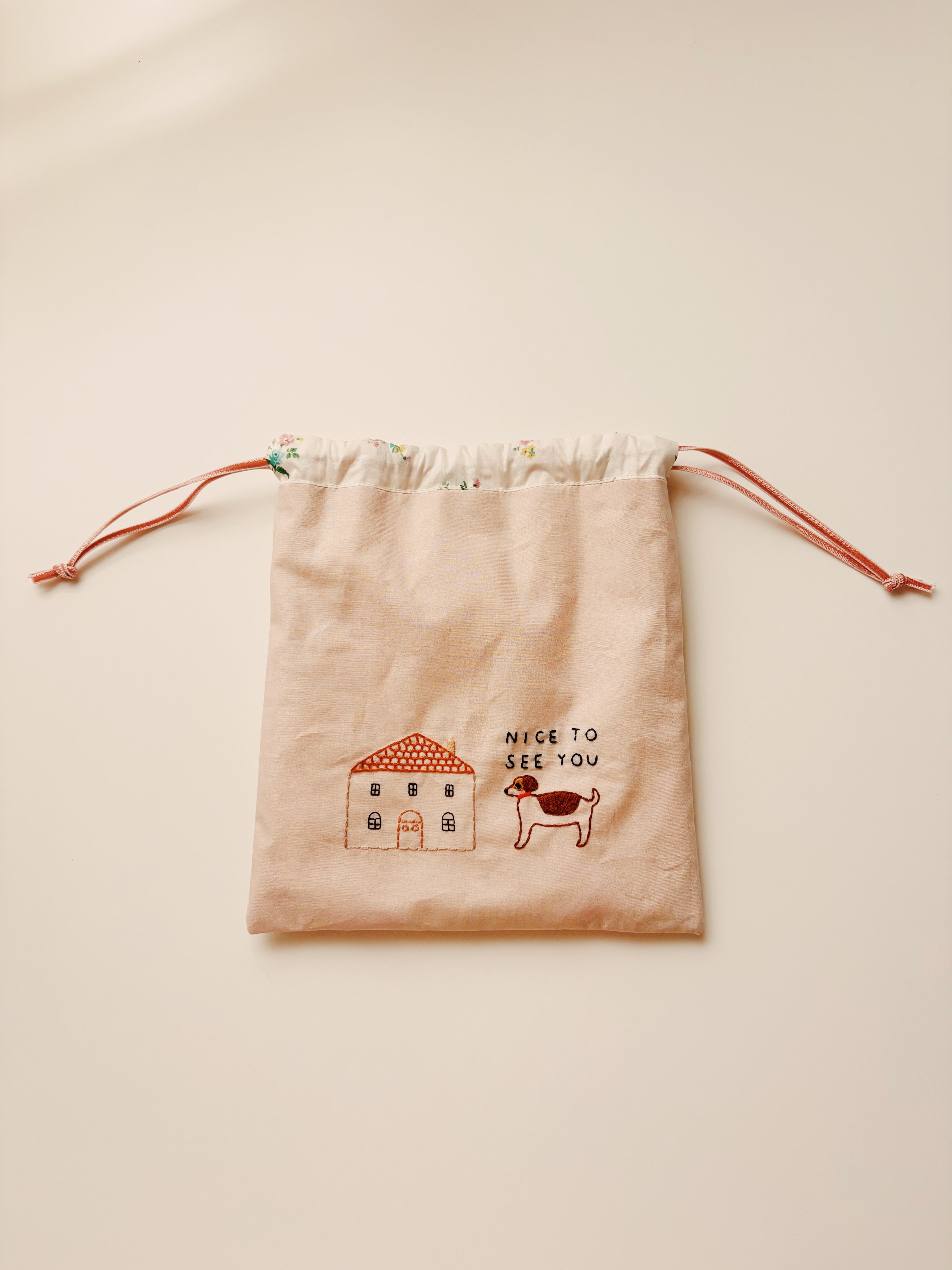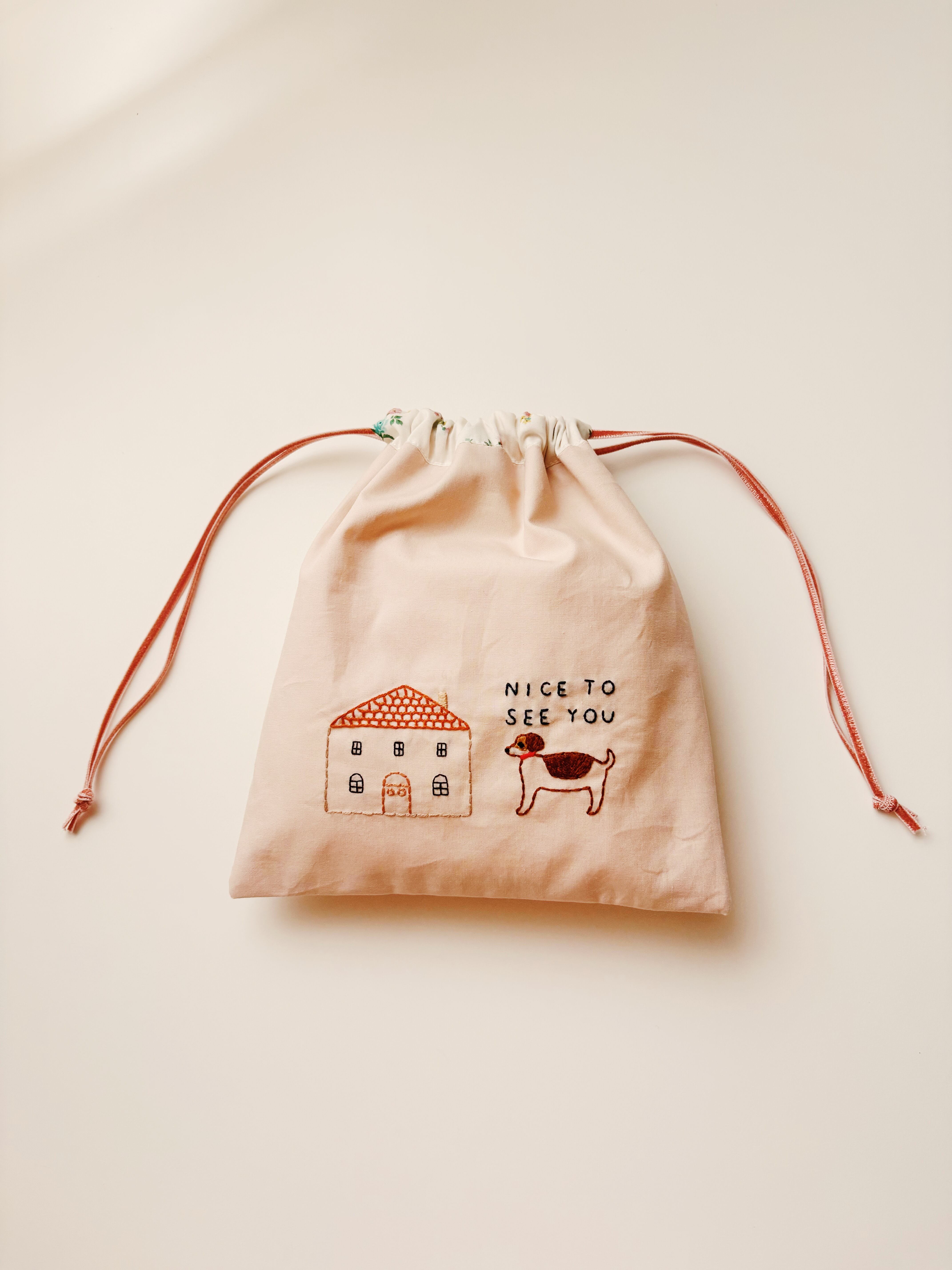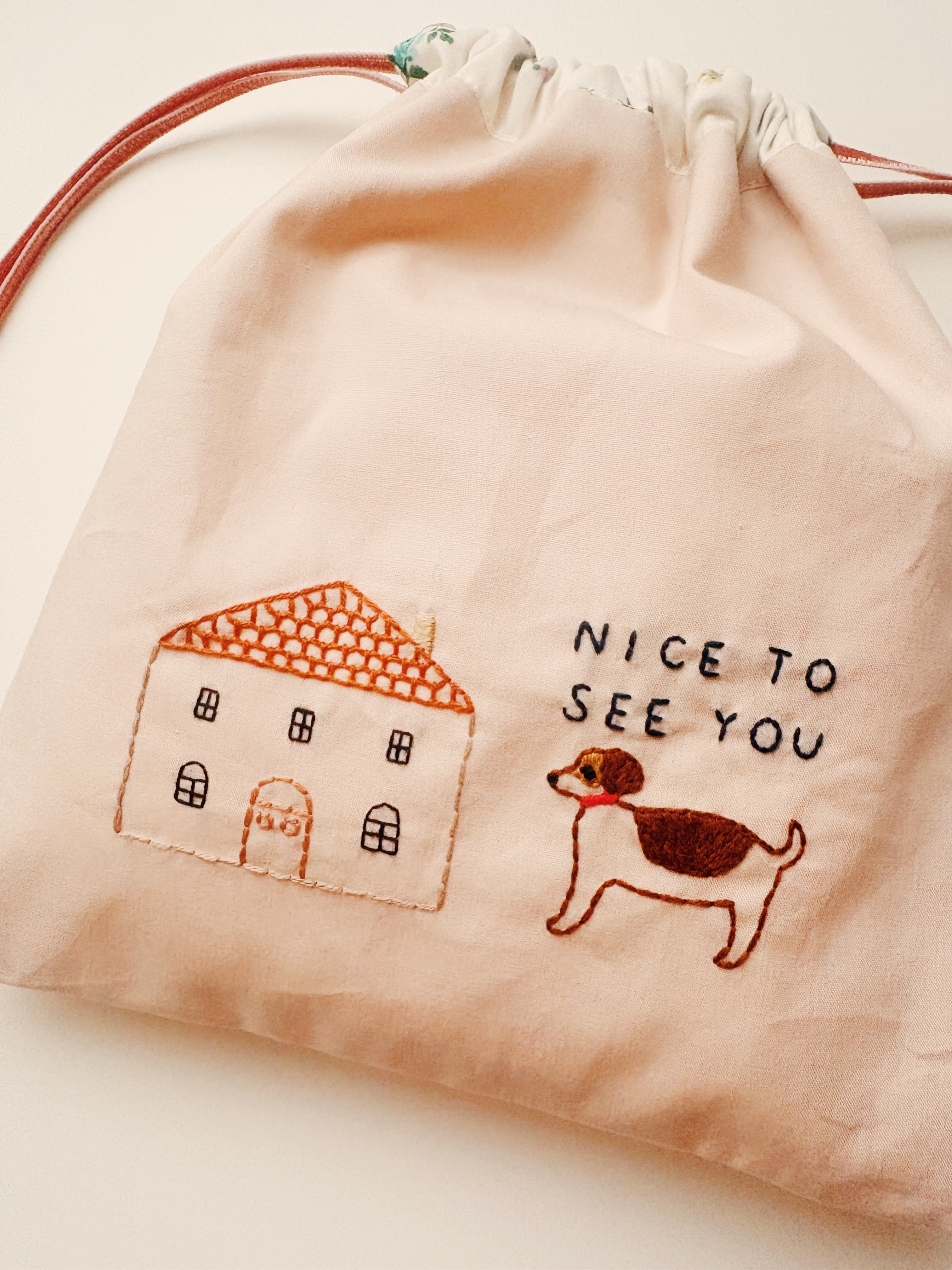 NICE TO SEE YOUの刺繍は、ビーグルと三角屋根の色の組み合わせが可愛くてお気に入りです。
