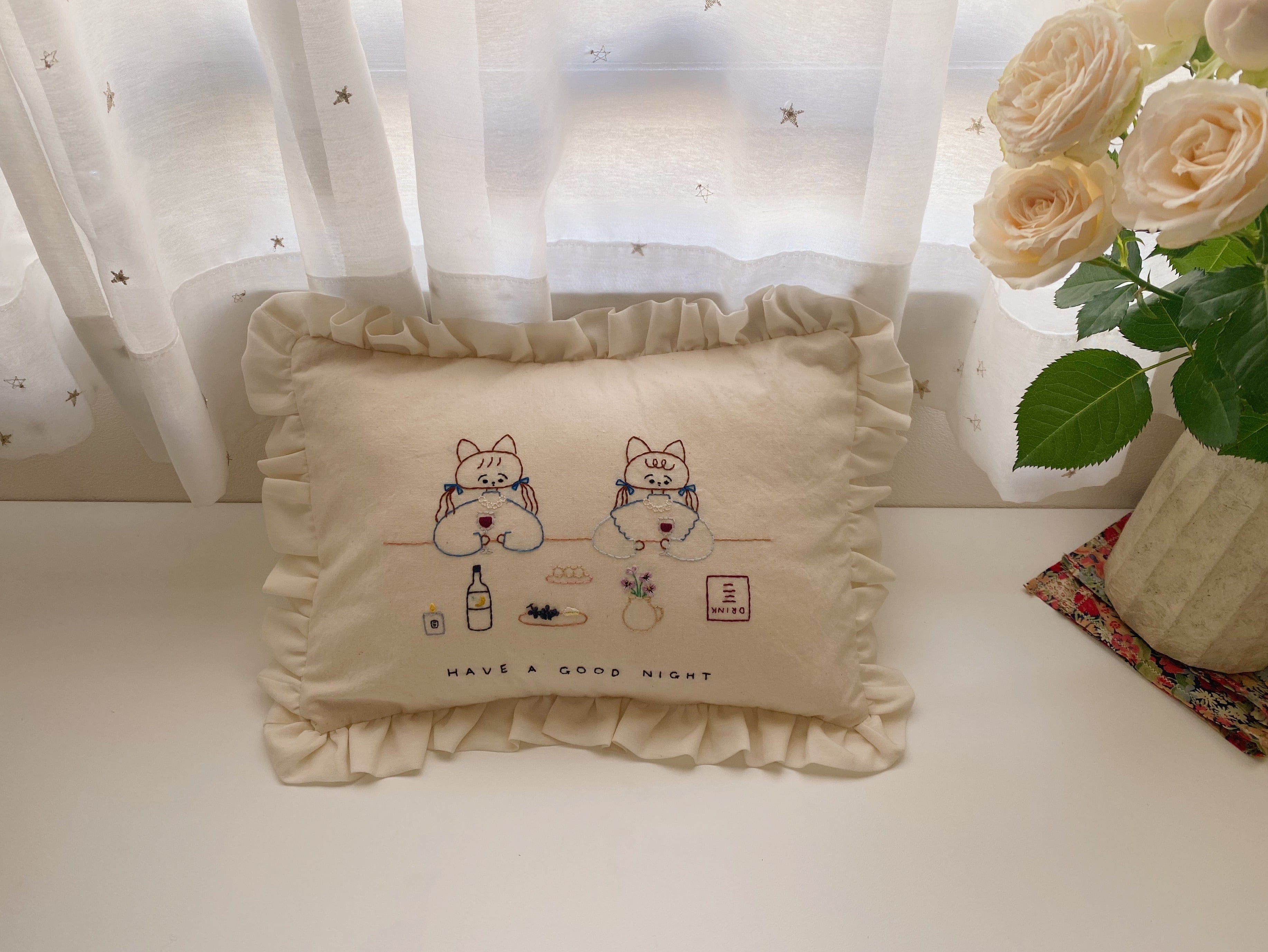 Little Frilled Cushion HAVE A GOOD NIGHT - Blue