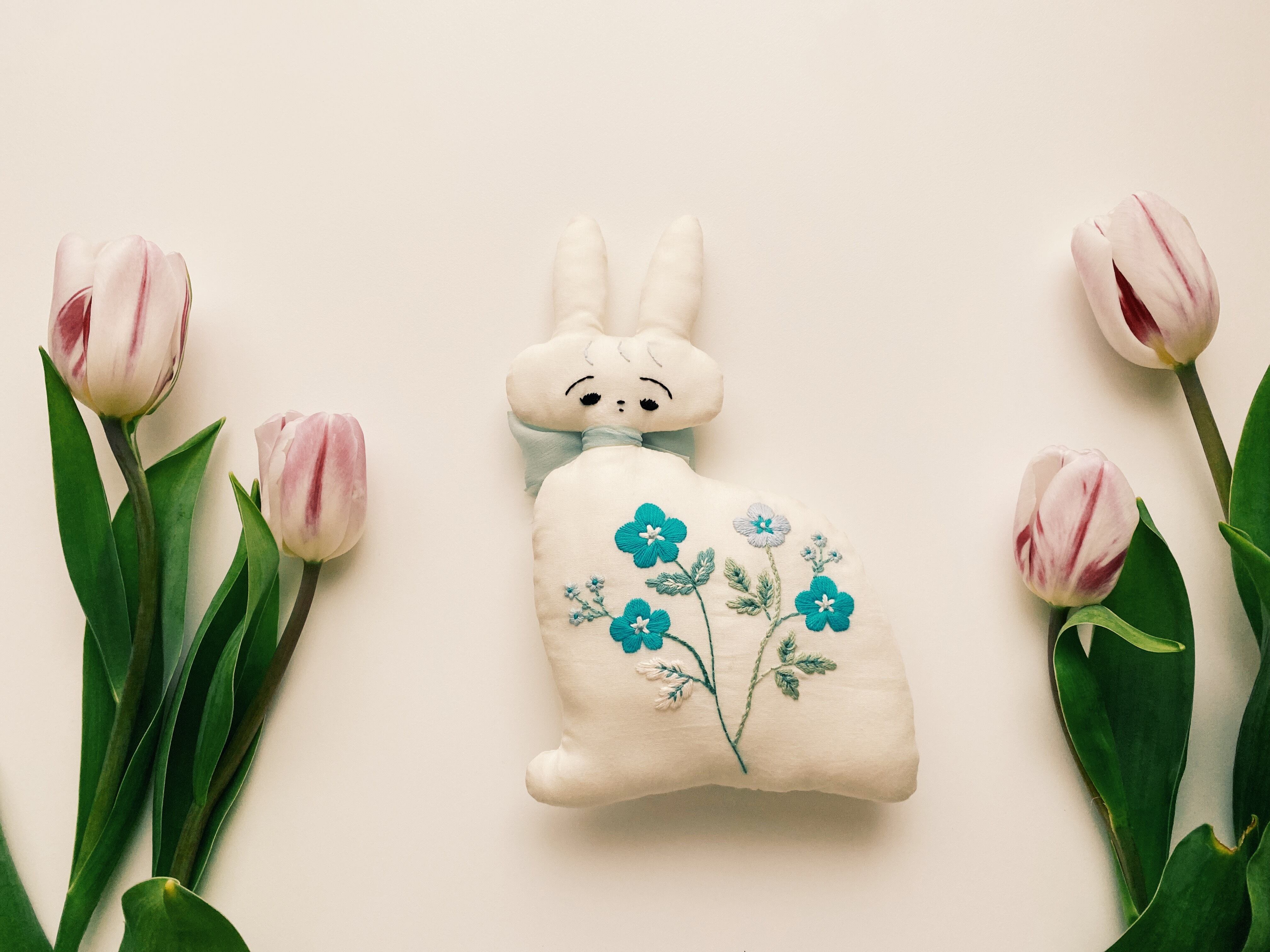 春はきれいな色の刺繍を沢山したいと思って、ぬいぐるみの新作シリーズを作りました。