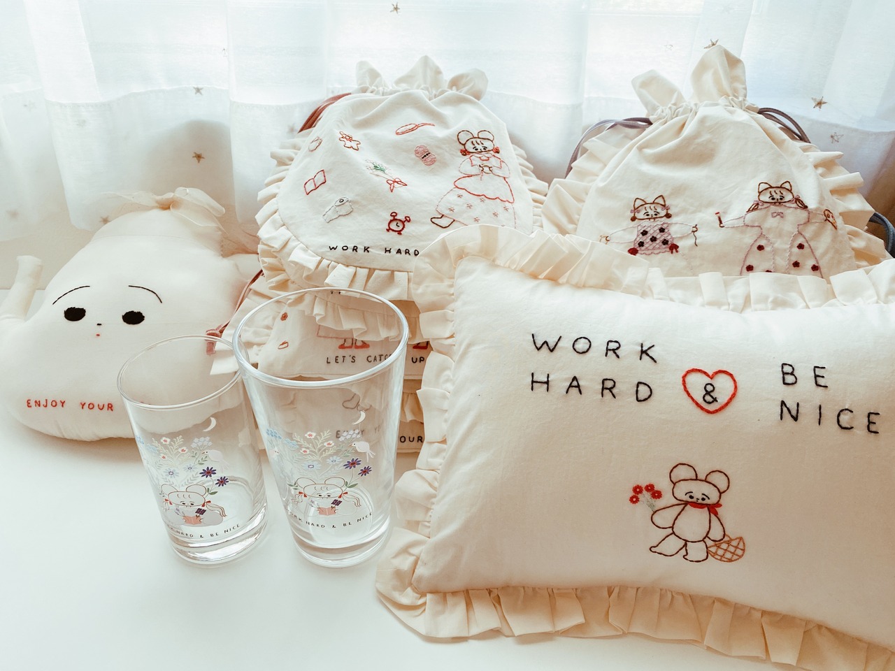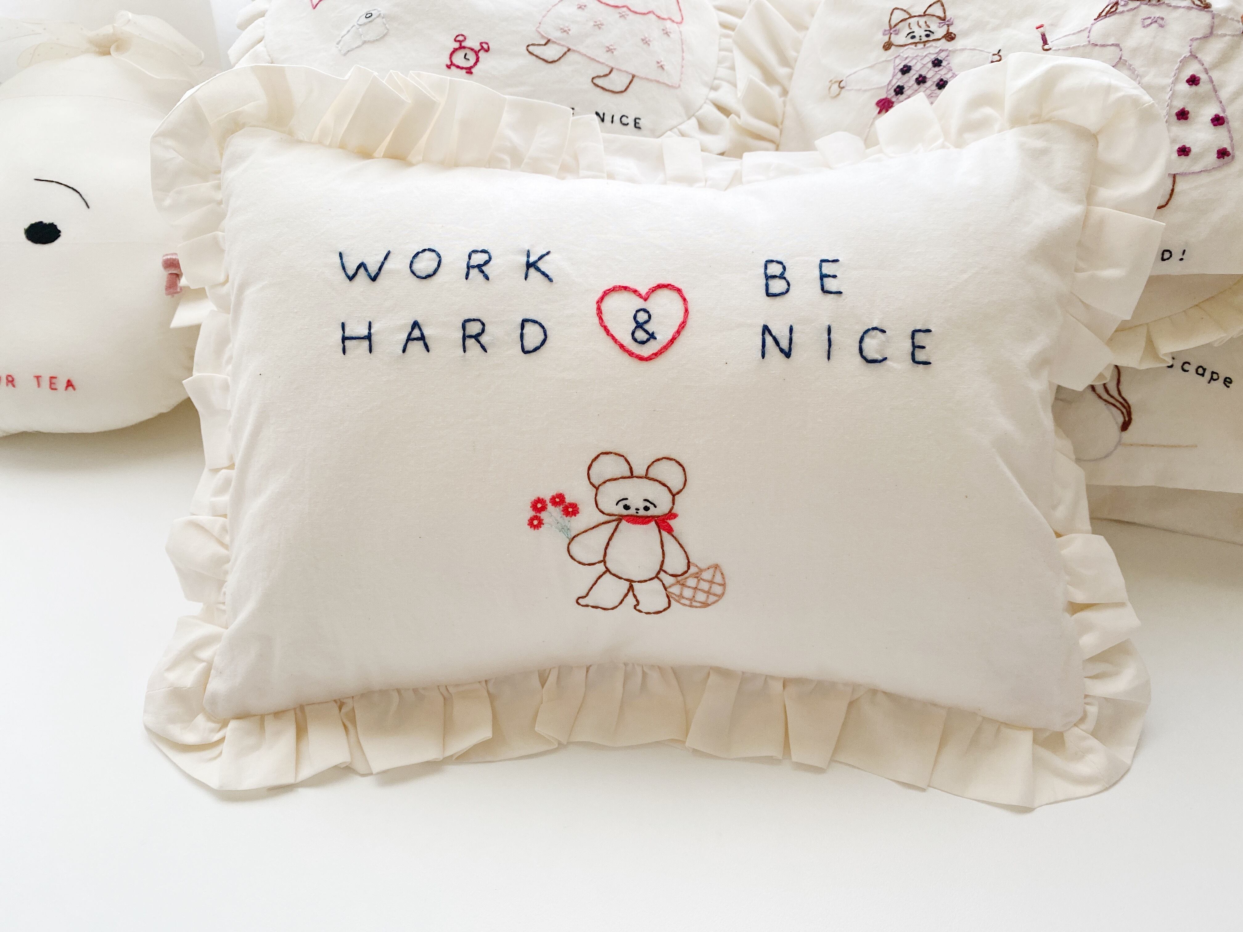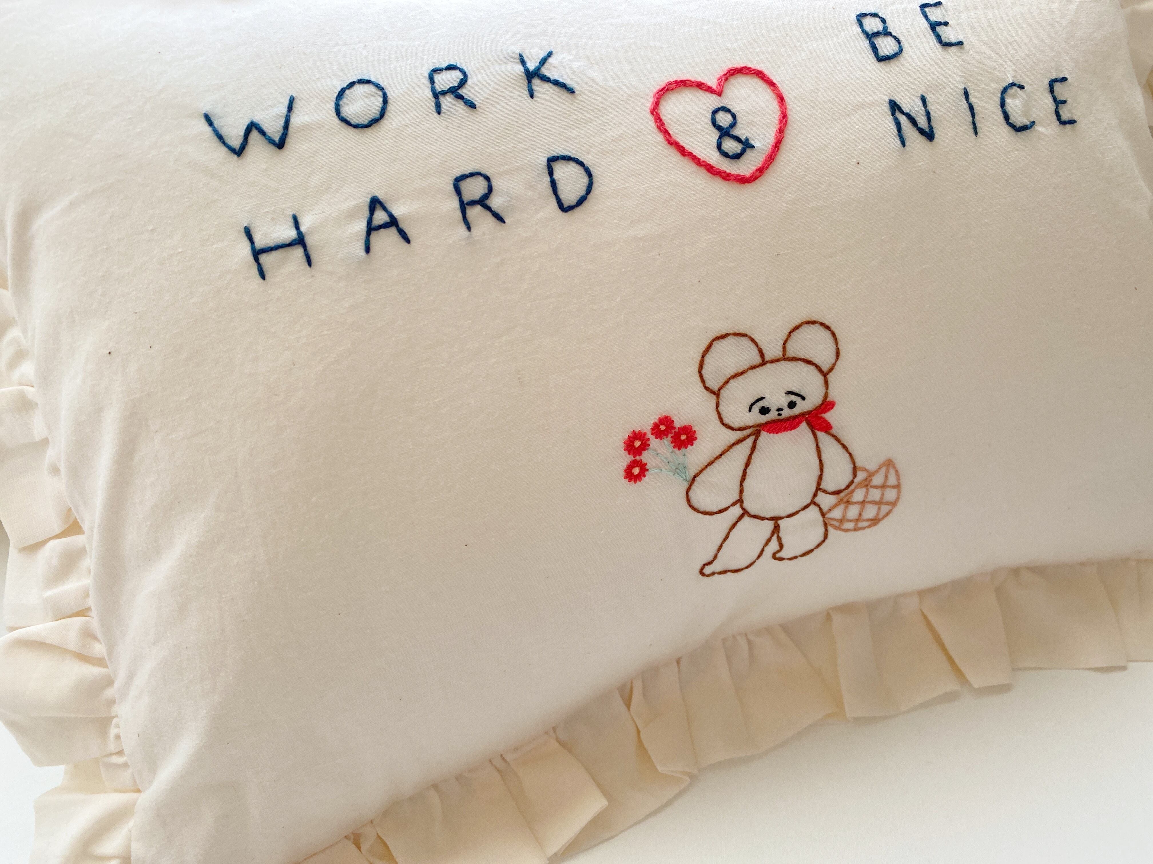 注• クッションは全てアトリエにて、作家の手によってつくられています。ひとつひとつ刺繍が違い、一点ずつなので再入荷の予定はありません。お気に入りを見つけていただけたら嬉しいです。