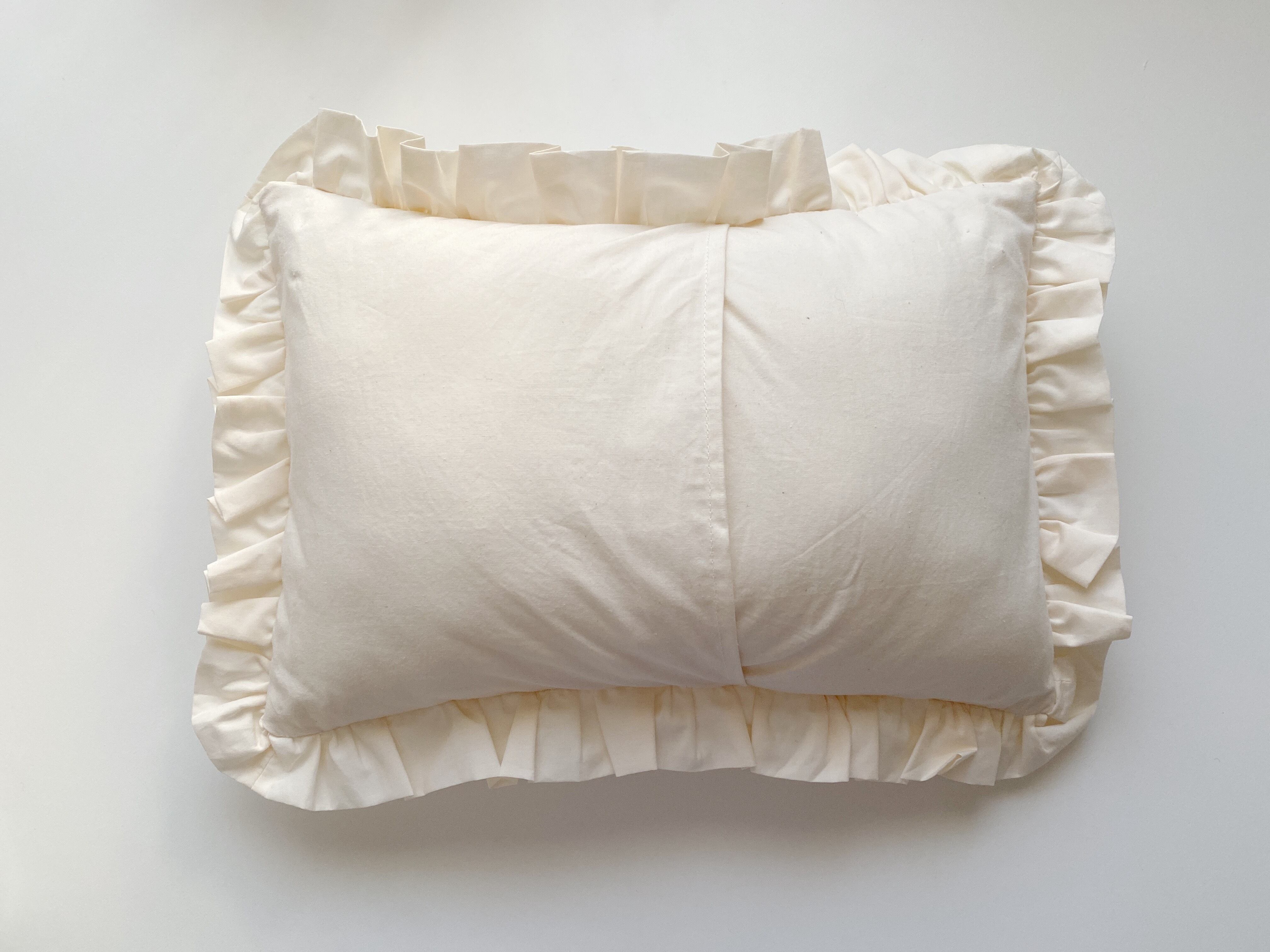 思ってこのデザインを考えました。小さめサイズで、暮らしと馴染むコットンのクッションです。