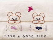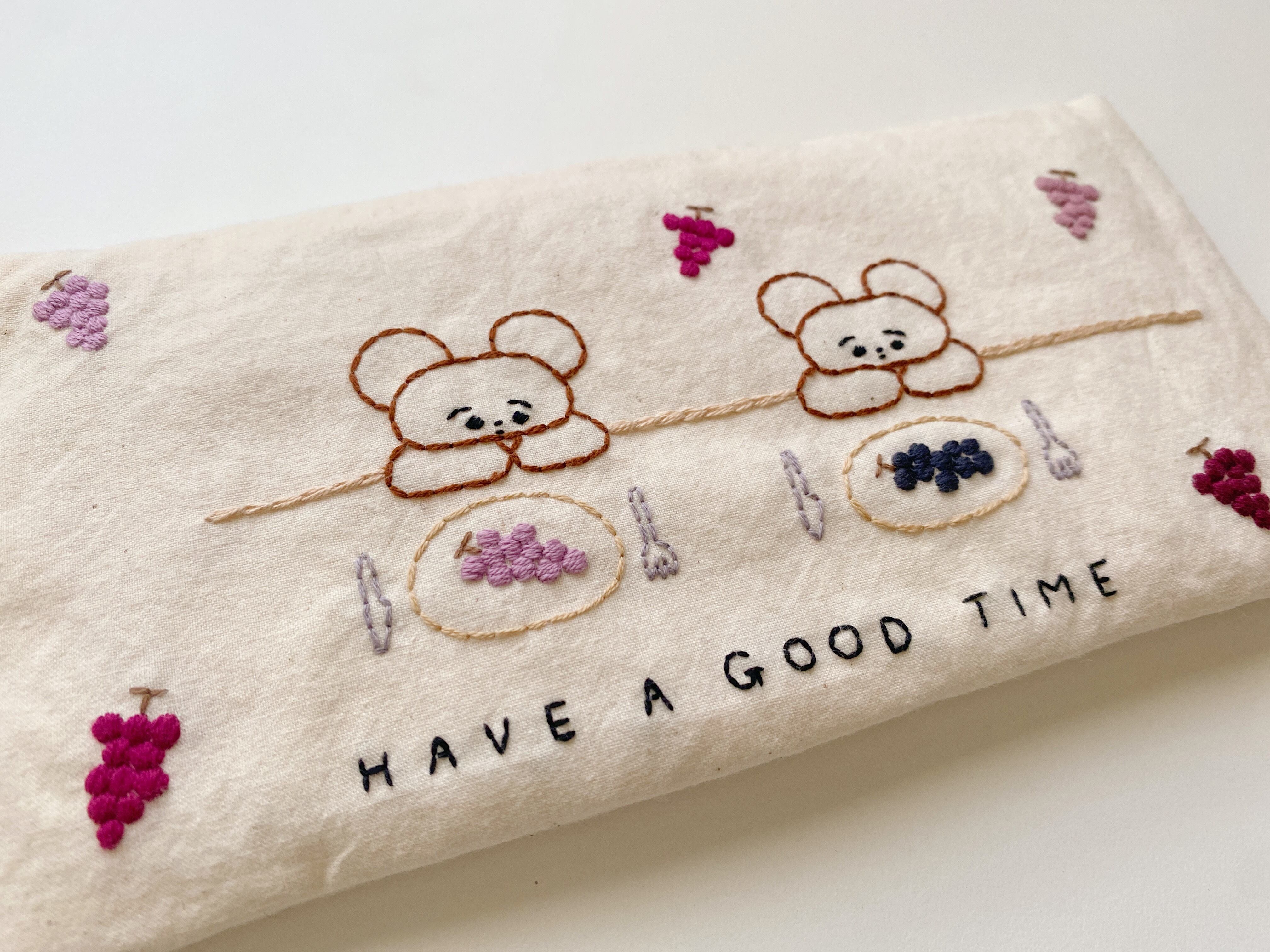 こどもが何か食べたいけれど、みんなが揃うのを待っている姿ってかわいいなあと思って刺繍にしてみました。