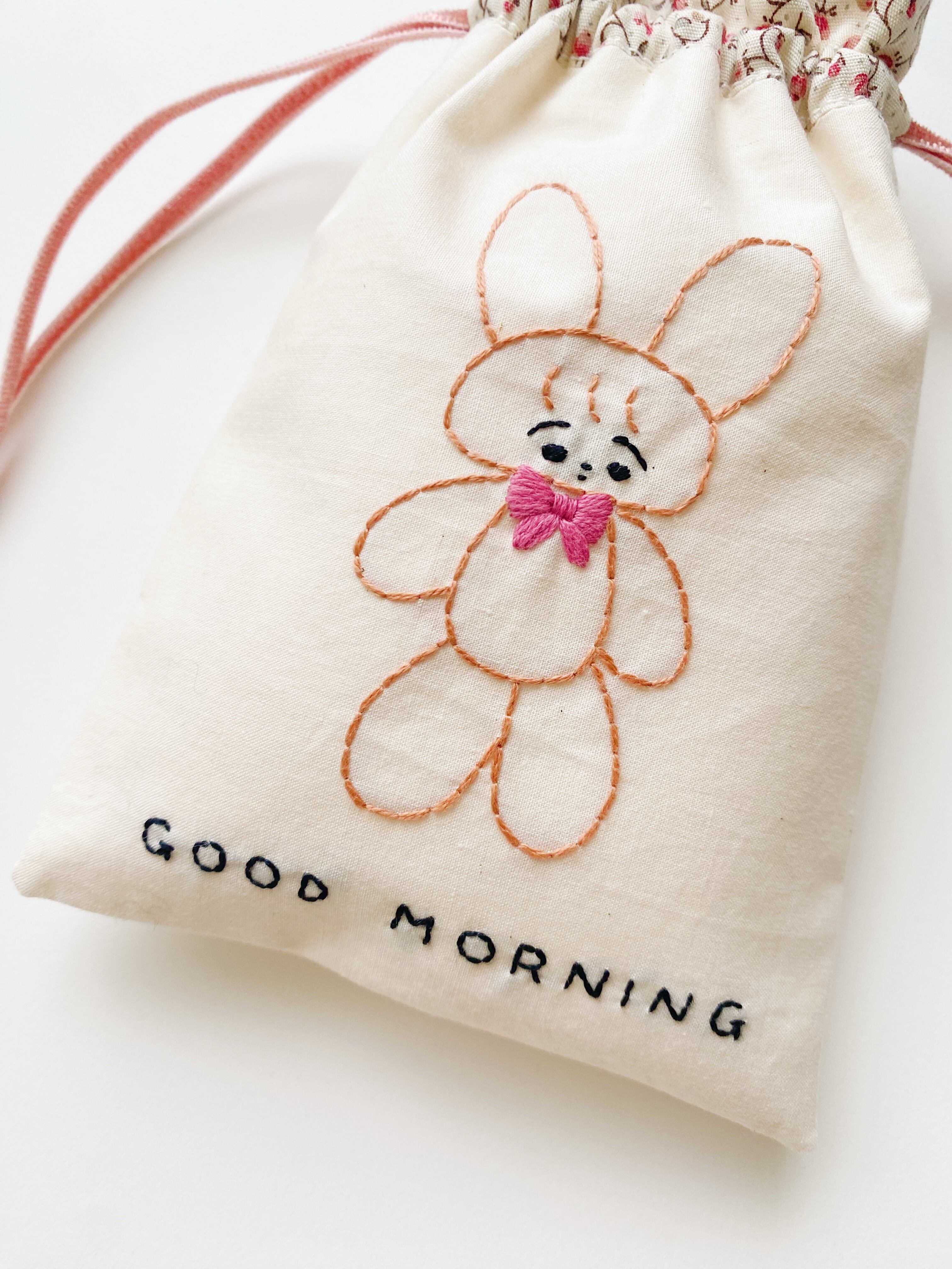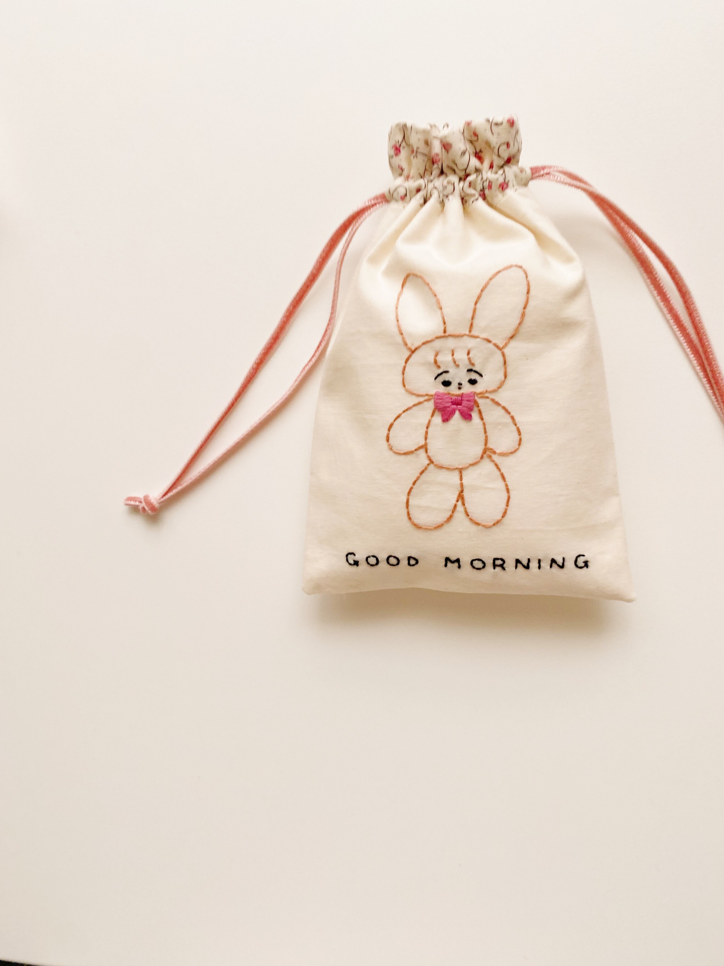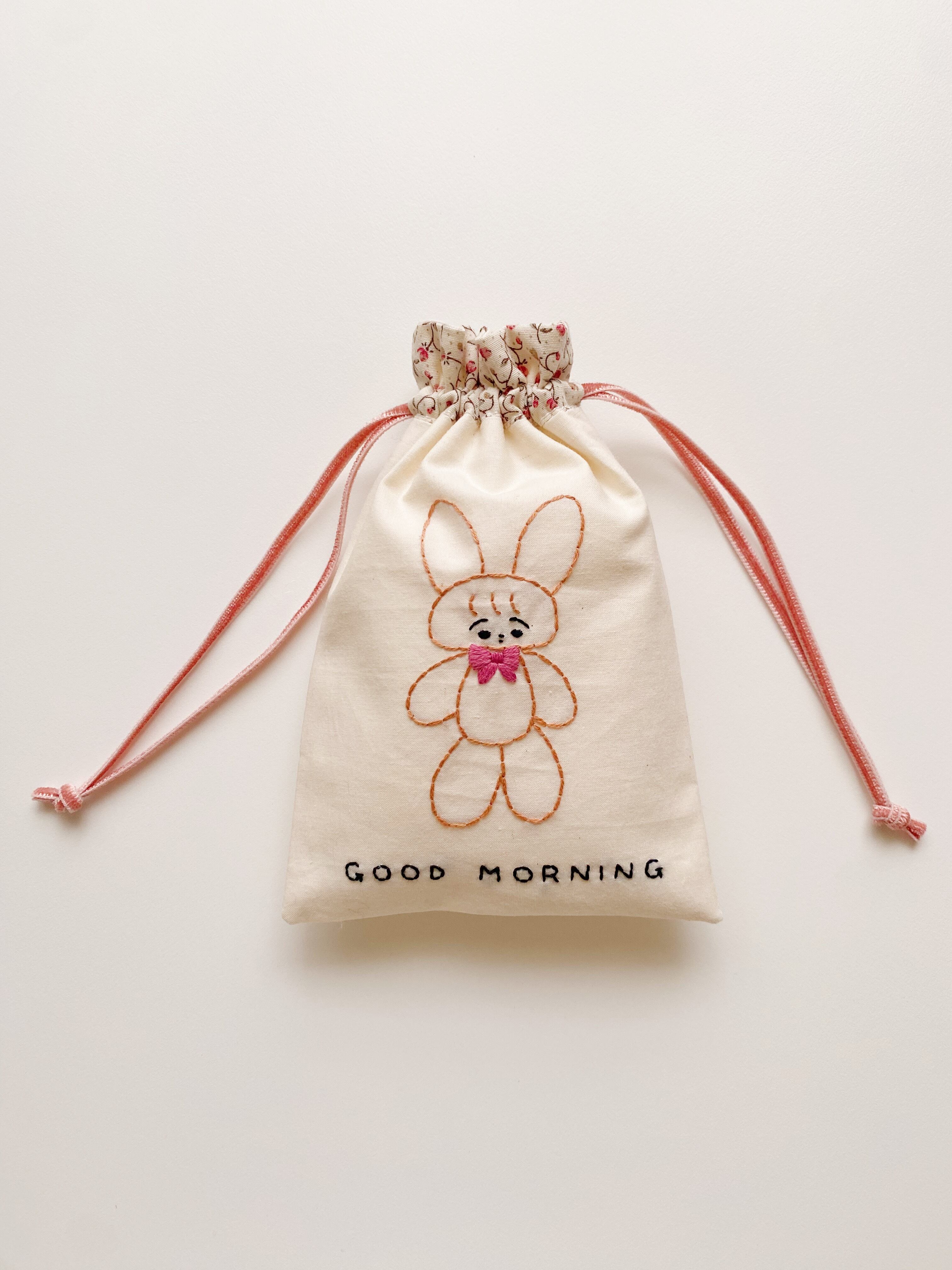 GOOD MORNINGと刺繍の文字が入っており、1日の始まりに、そばにあったら嬉しくなる、
