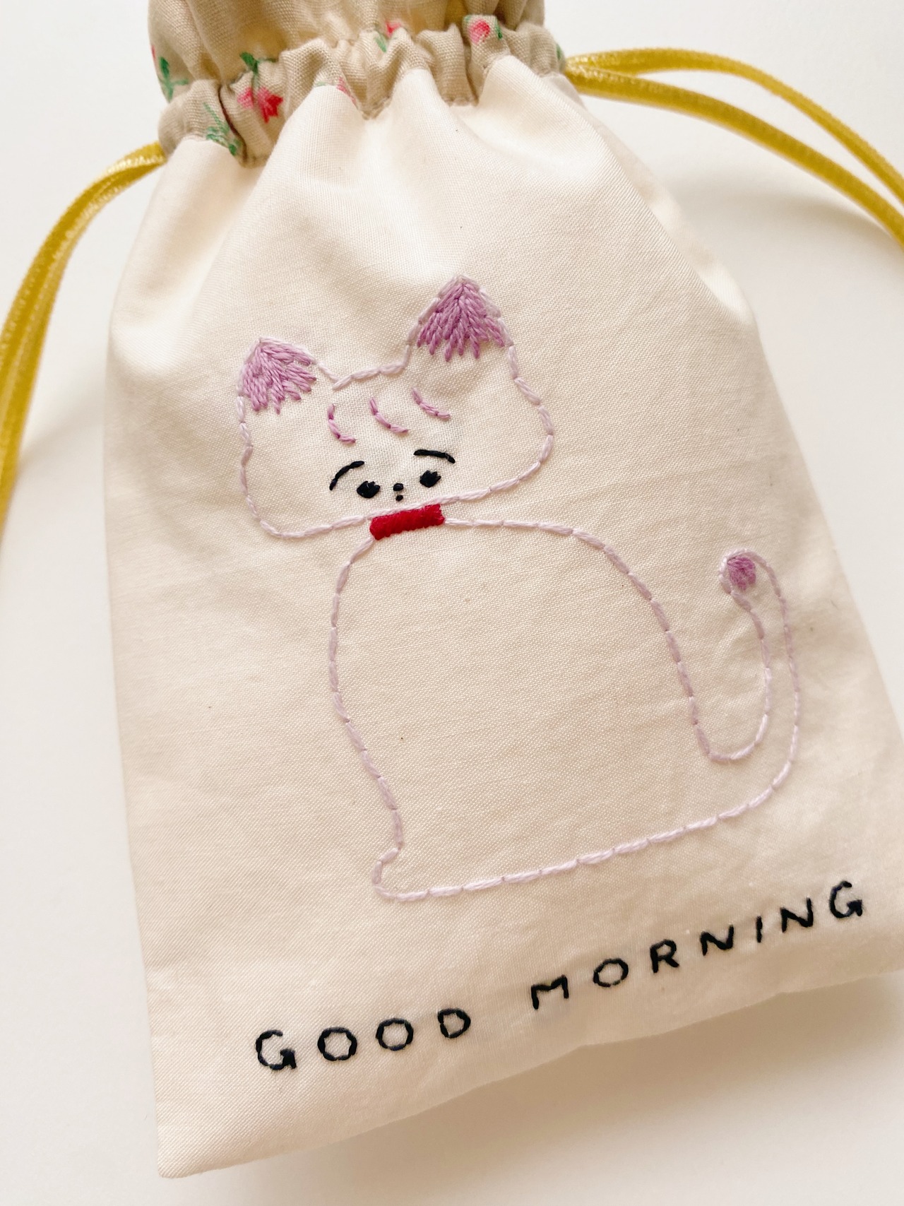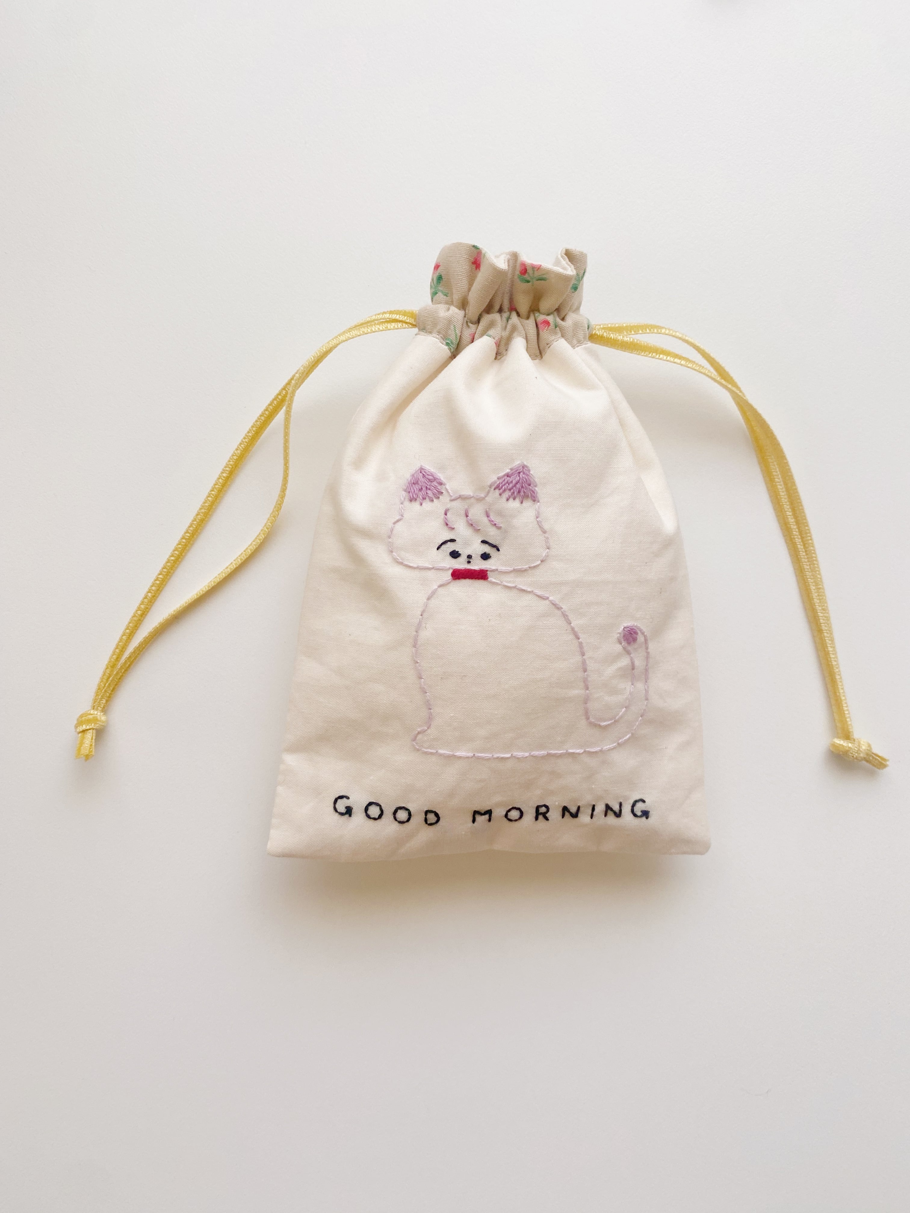 GOOD MORNINGと刺繍の文字が入っており、1日の始まりに、そばにあったら嬉しくなる、
