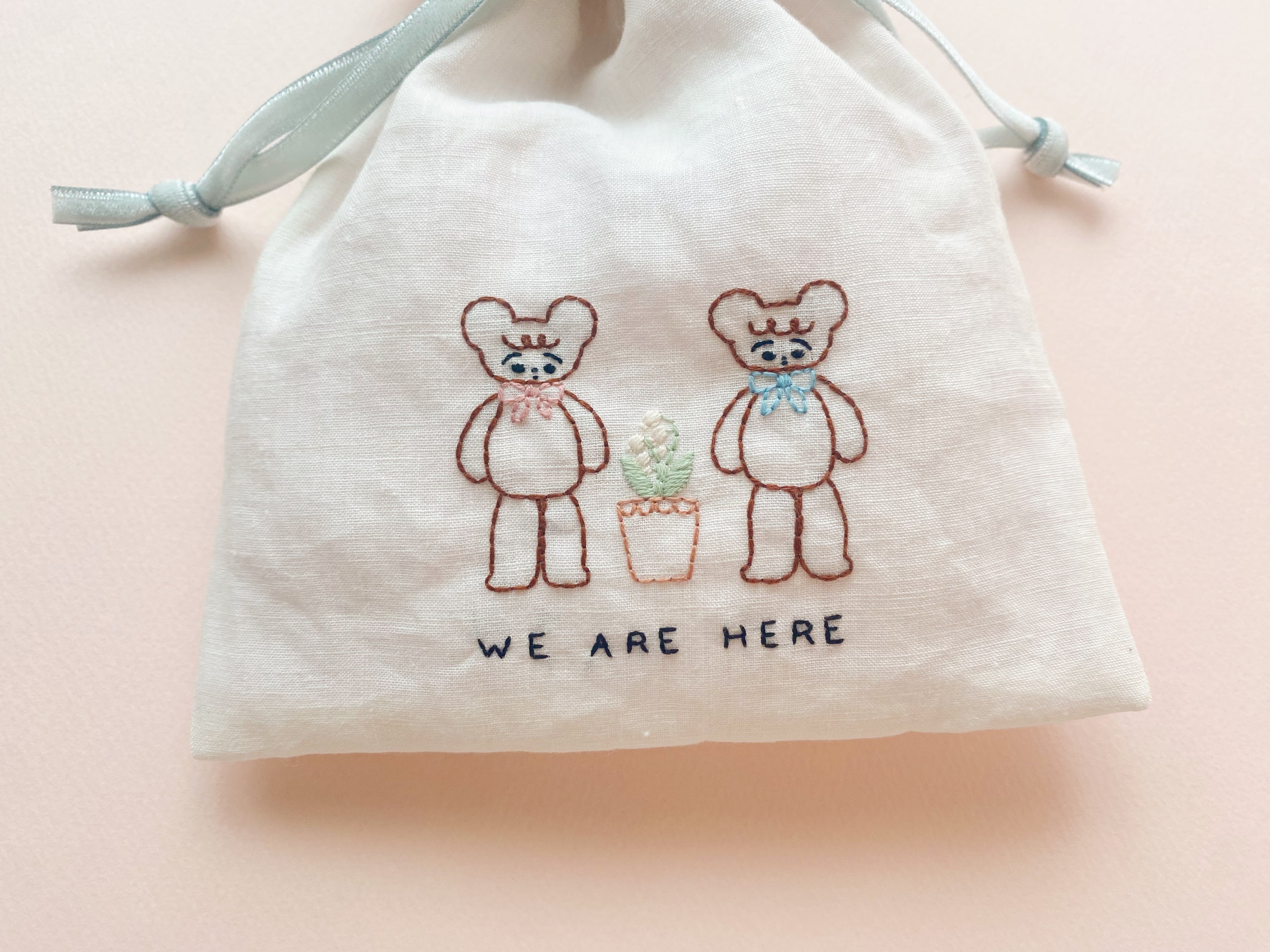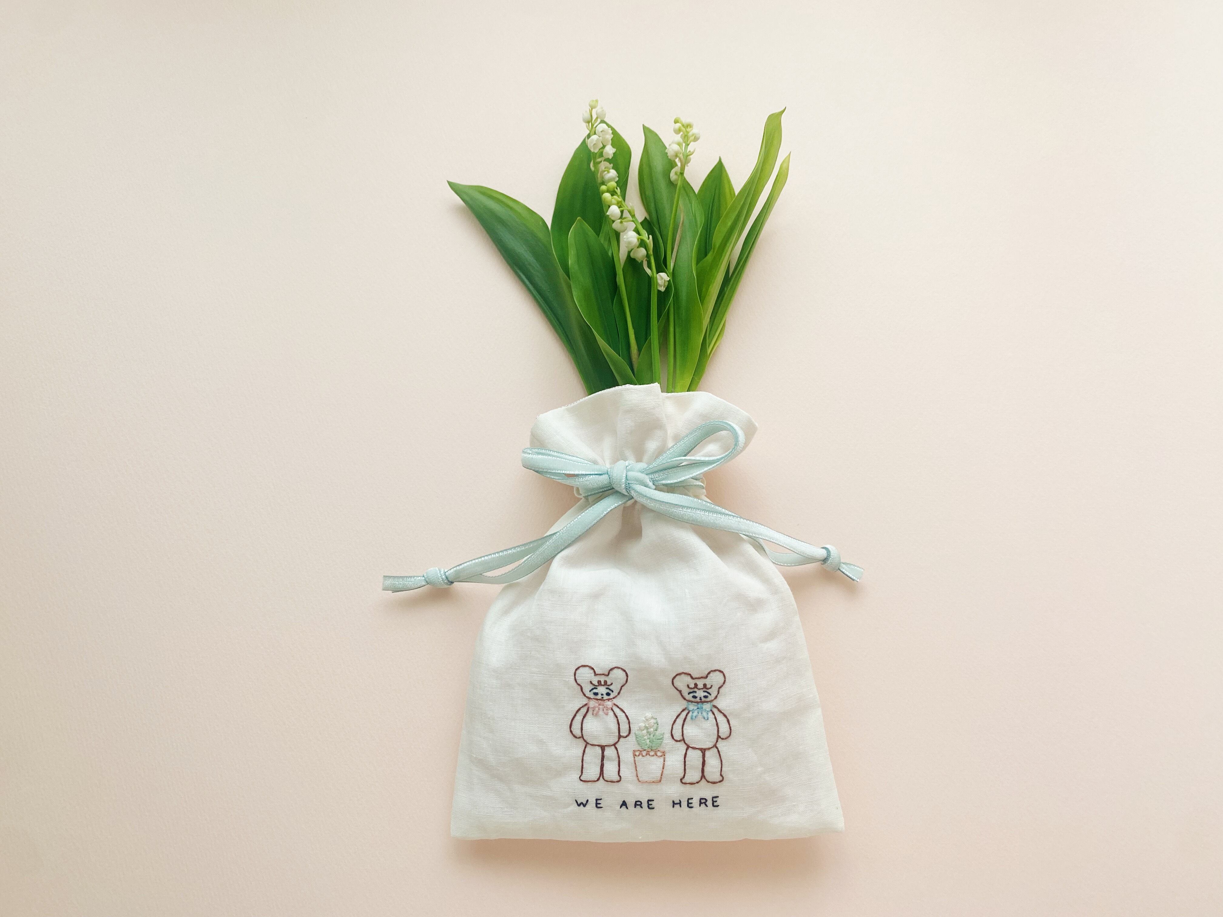 Little Linen Bag -We are here / white