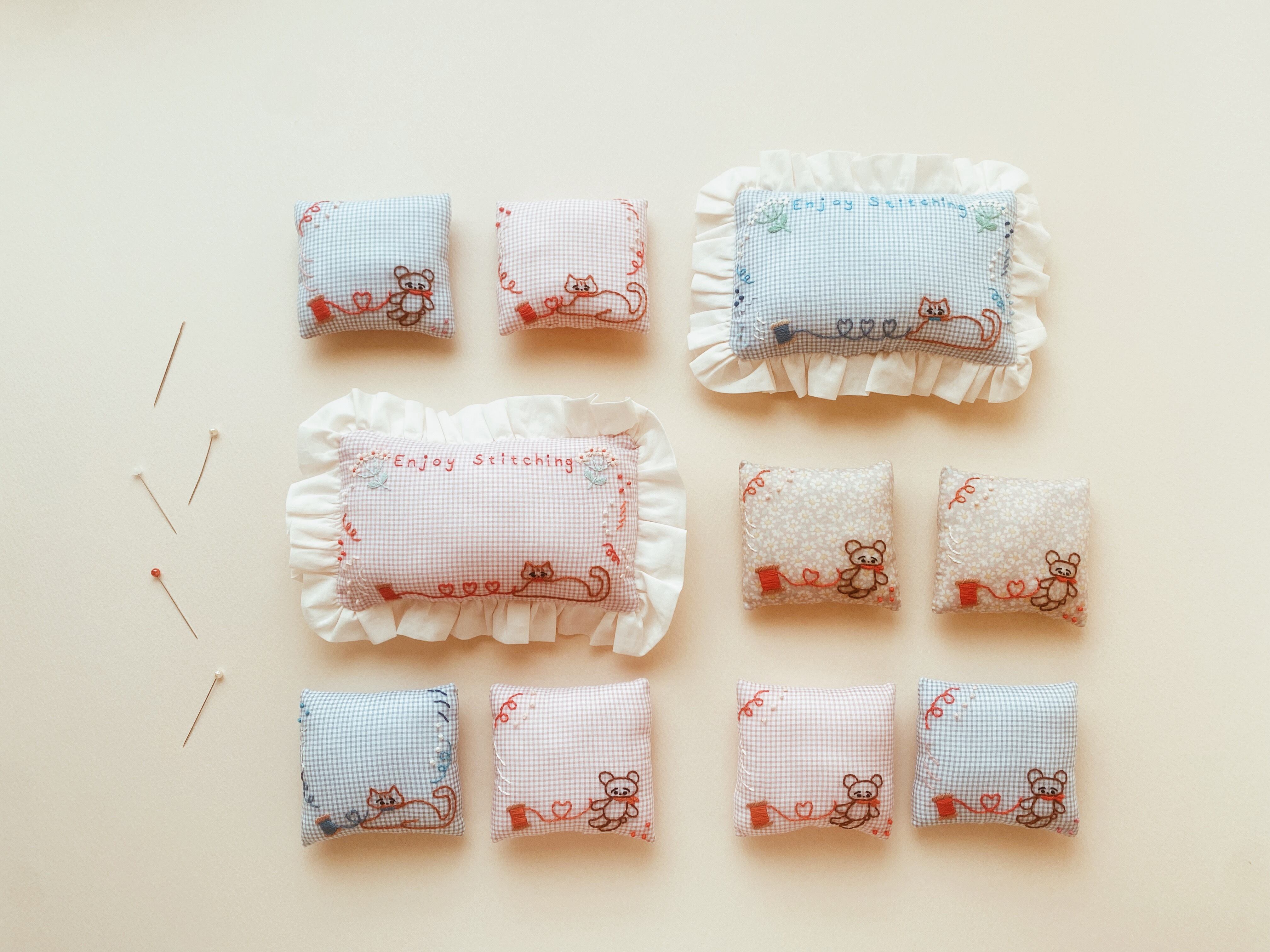注• ピンクッションは全てアトリエにて、作家の手によってつくられています。同じ柄でも、ひとつひとつの表情が少しずつ違いますが、ご理解いただけますようお願いいたします。