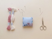 *お届けするのはピンクッションのみになります。撮影用のまち針やハサミ、その他の作品はついてきませんので、ご注意ください。