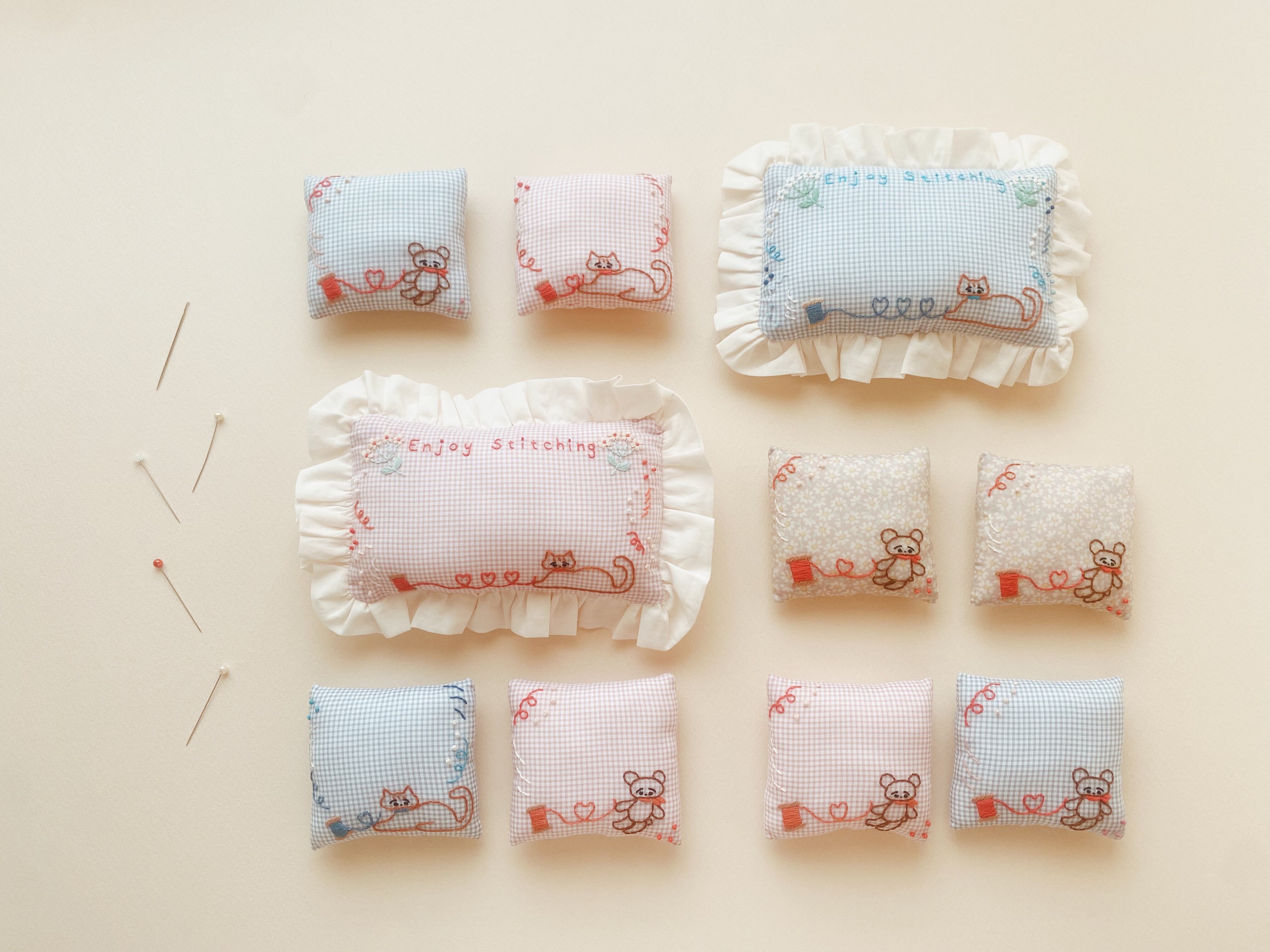 注• ピンクッションは全てアトリエにて、作家の手によってつくられています。同じ柄でも、ひとつひとつの表情が少しずつ違いますが、ご理解いただけますようお願いいたします。