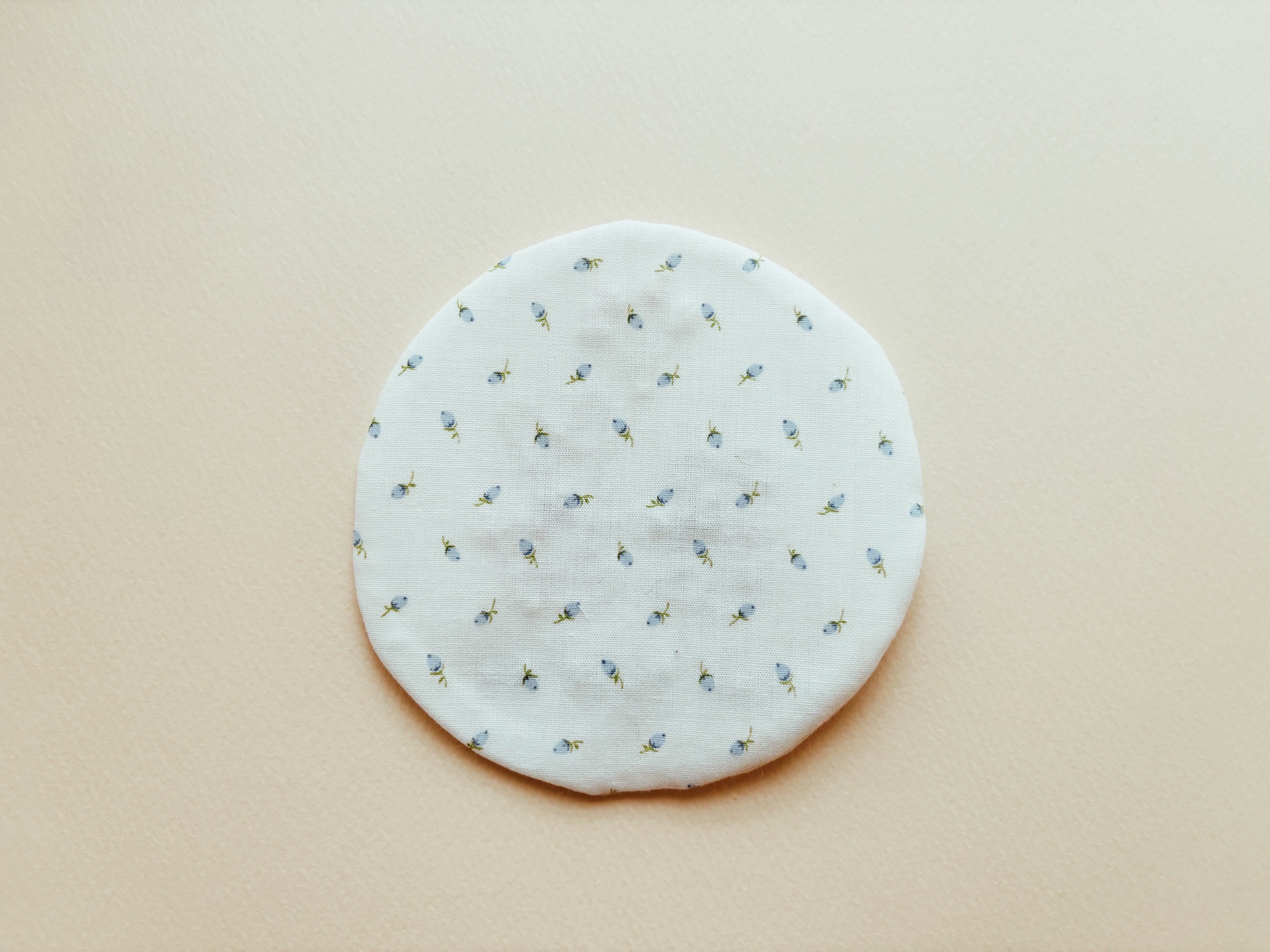 裏は、私が旅先などでコツコツ集めているビンテージの小花柄のファブリックを使用しています。